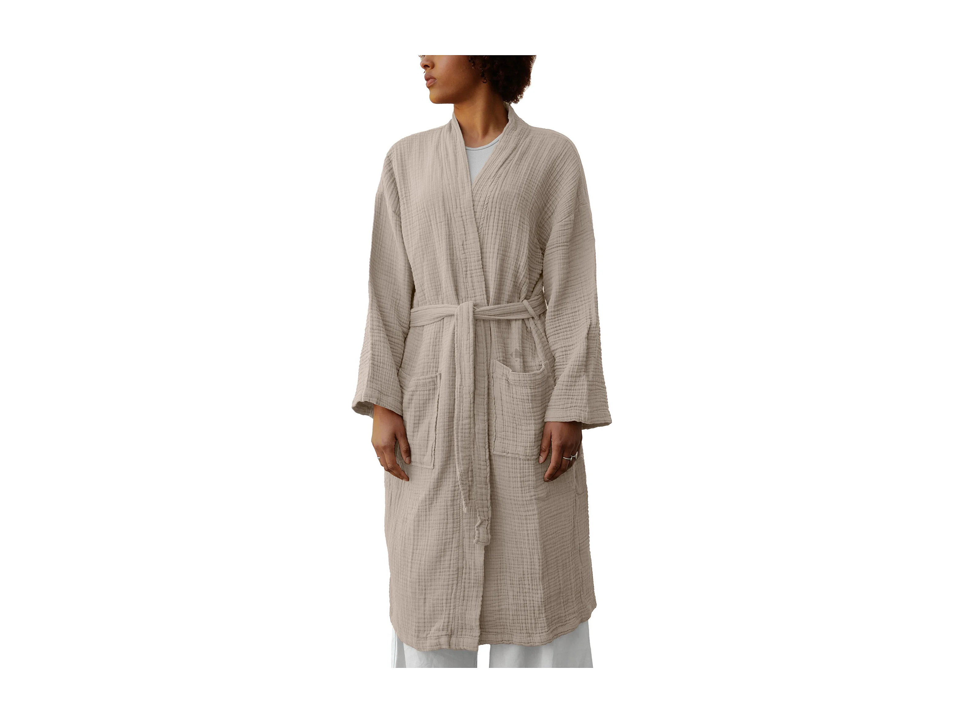 Peignoir col kimono KEA mousseline de coton taille L-XL beige ficelle