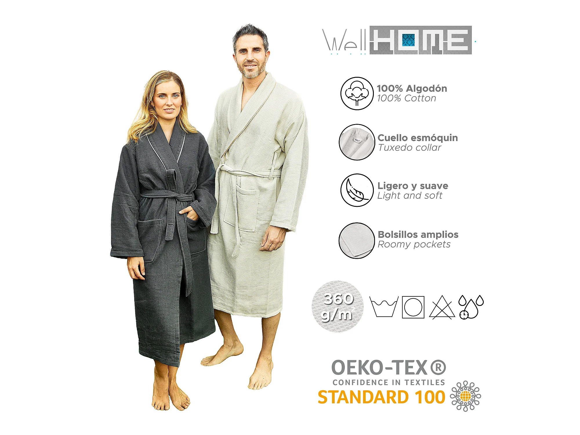 PEIGNOIR L/XL 360 gr/m2 Nid d'abeille 100% coton Gris