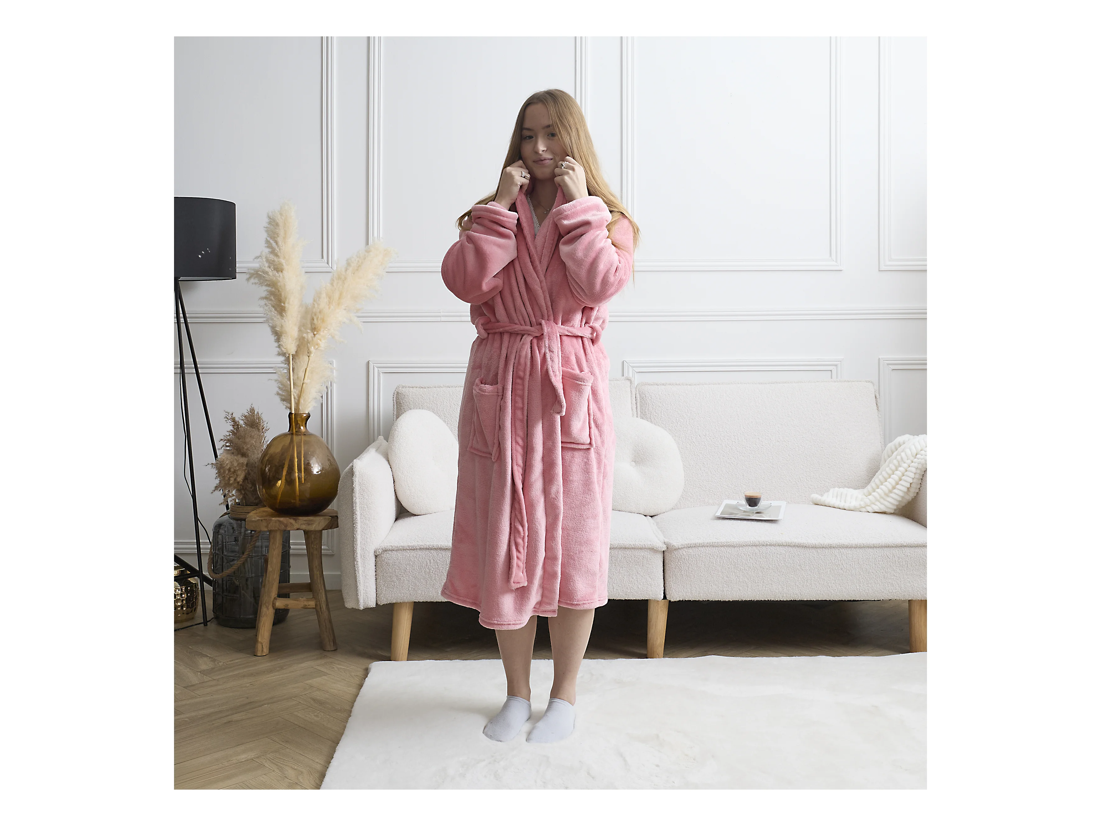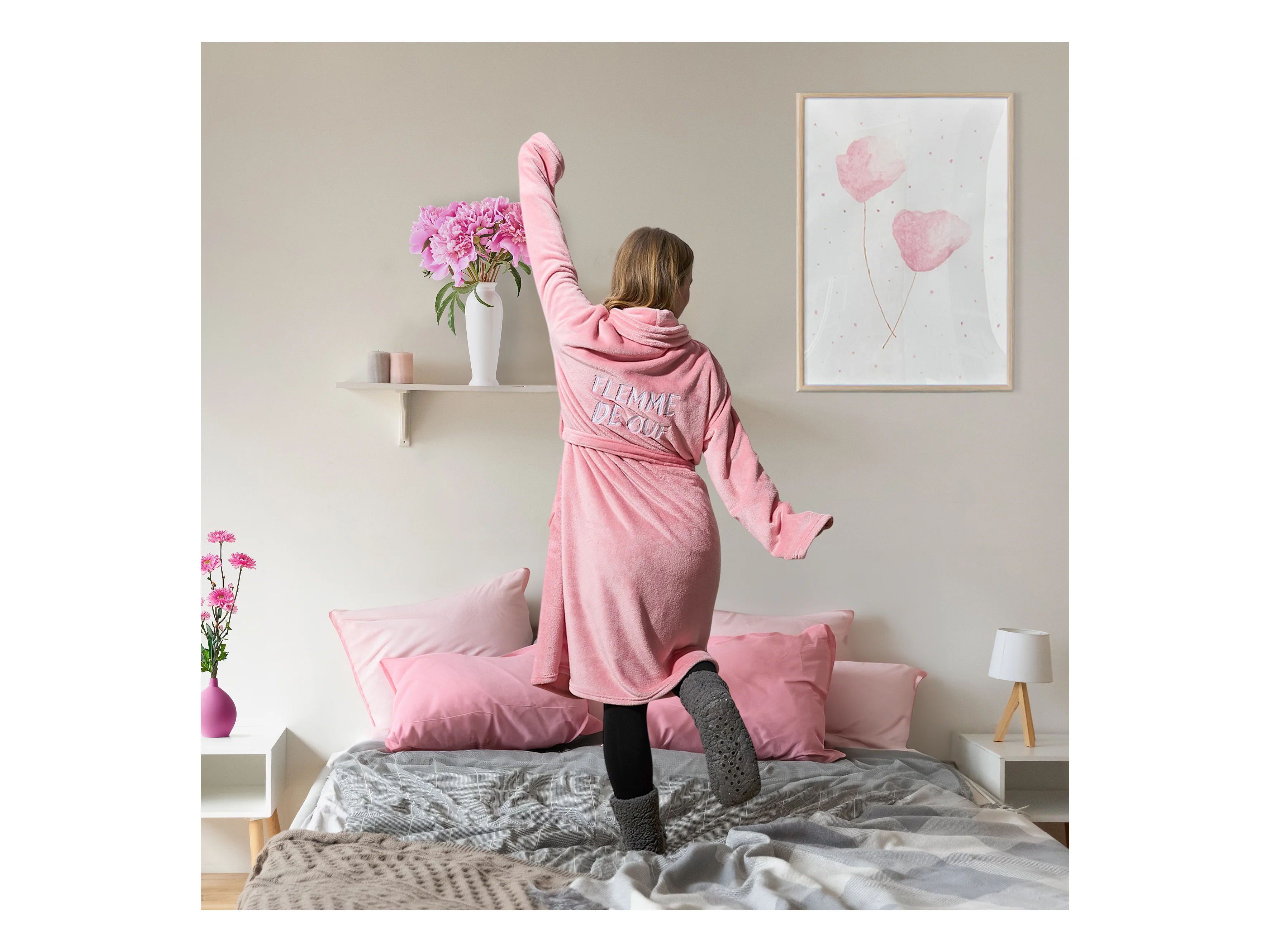 Peignoir Sherpa Grl Pwr Rose, Blanc