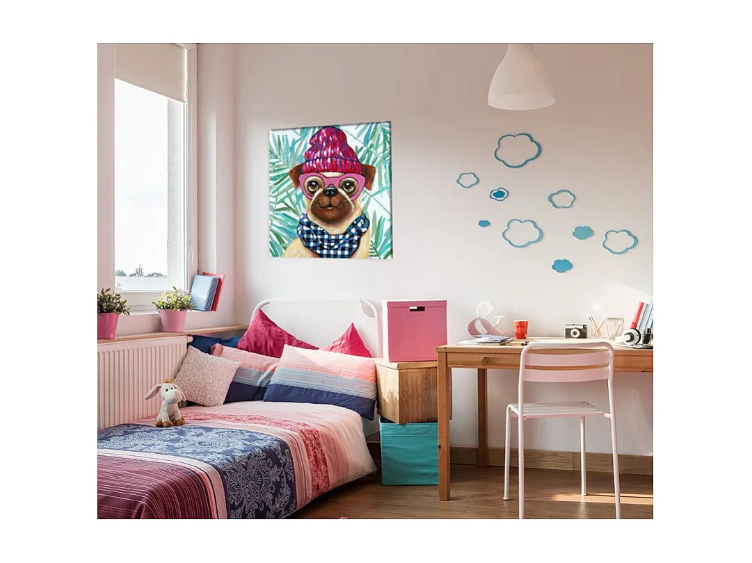 Tableau peinture chien à lunettes 70 x 70 cm - LOULOU DOG