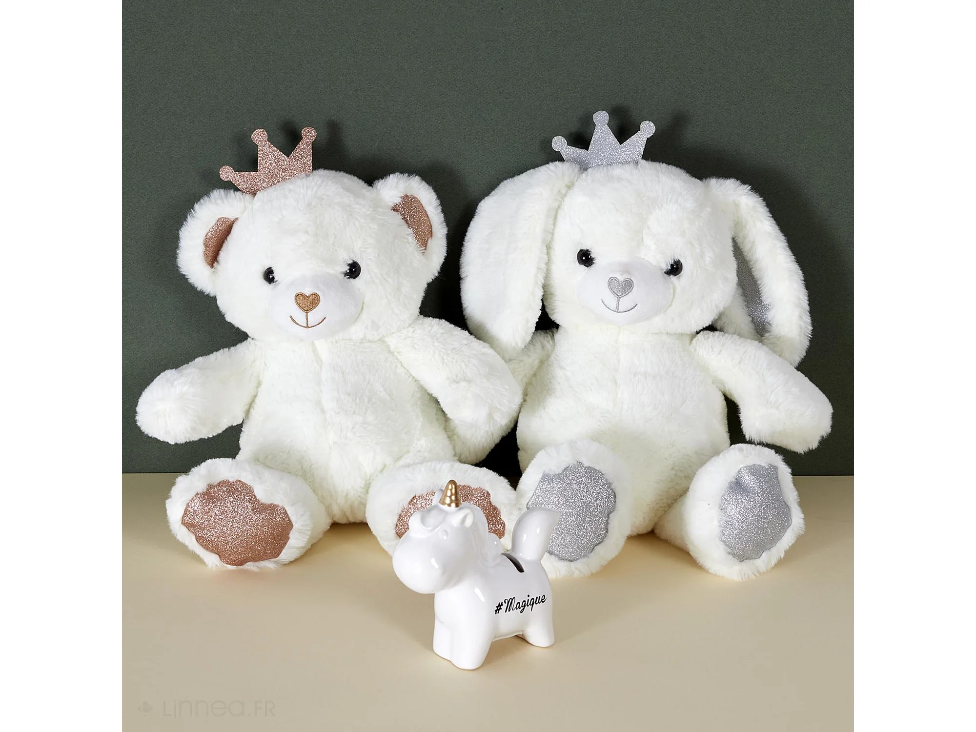 Peluche lapin 25cm pailleté collection ROYAL PETS blanc et argent