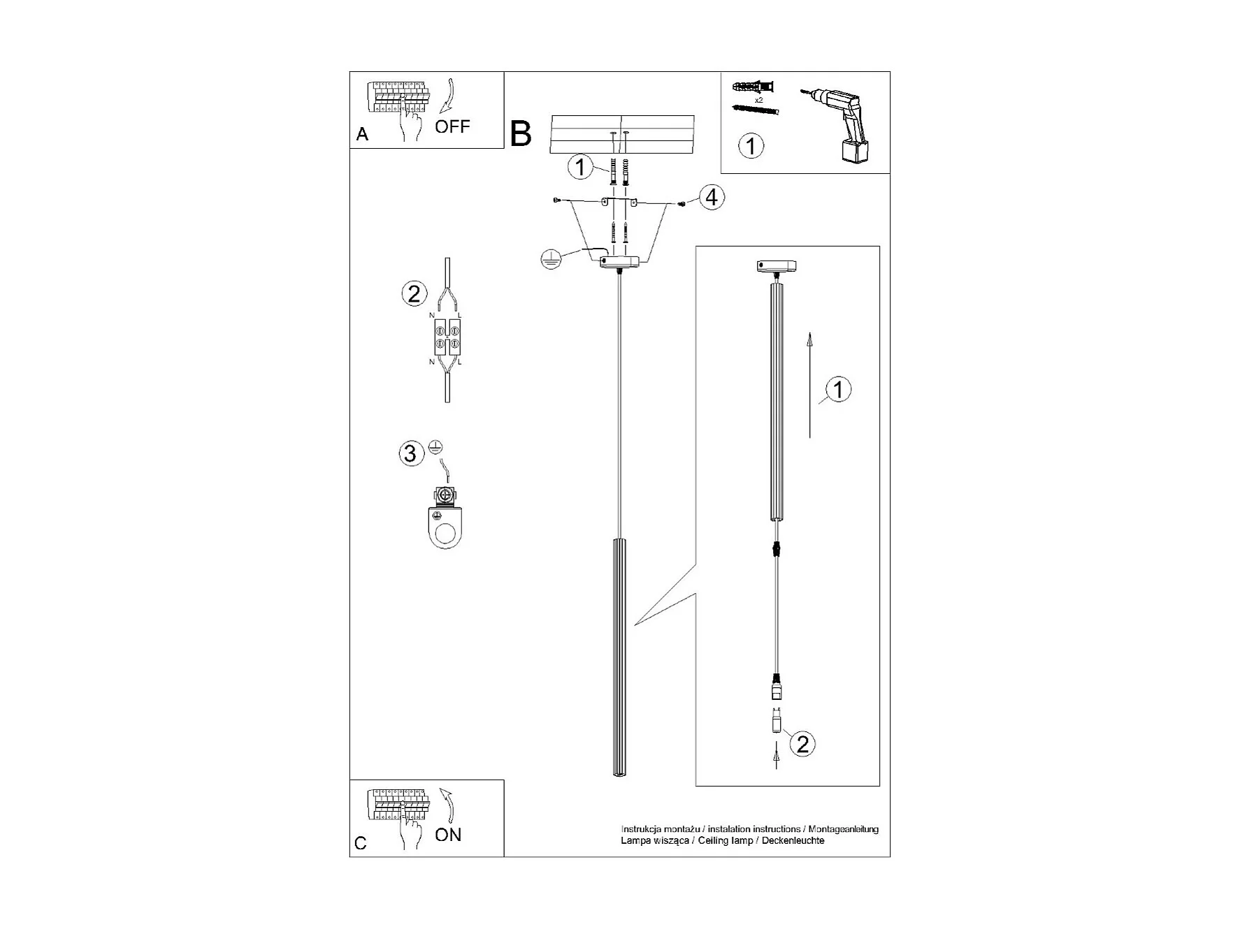 Pendentif Elara moderne en acier - 1 sources lumineuses 4000K - L.8 x H.120 cm - noir