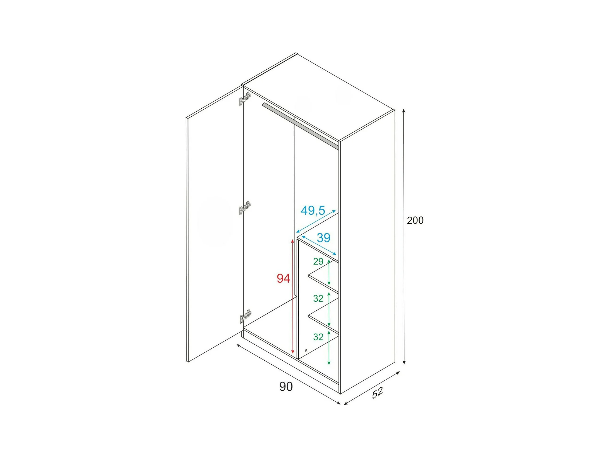 Armoire Abilene, armoire de chambre avec 2 portes battantes, armoire avec 3 étagères et tringle à vêtements, 90x52h200 cm, blanc et marron