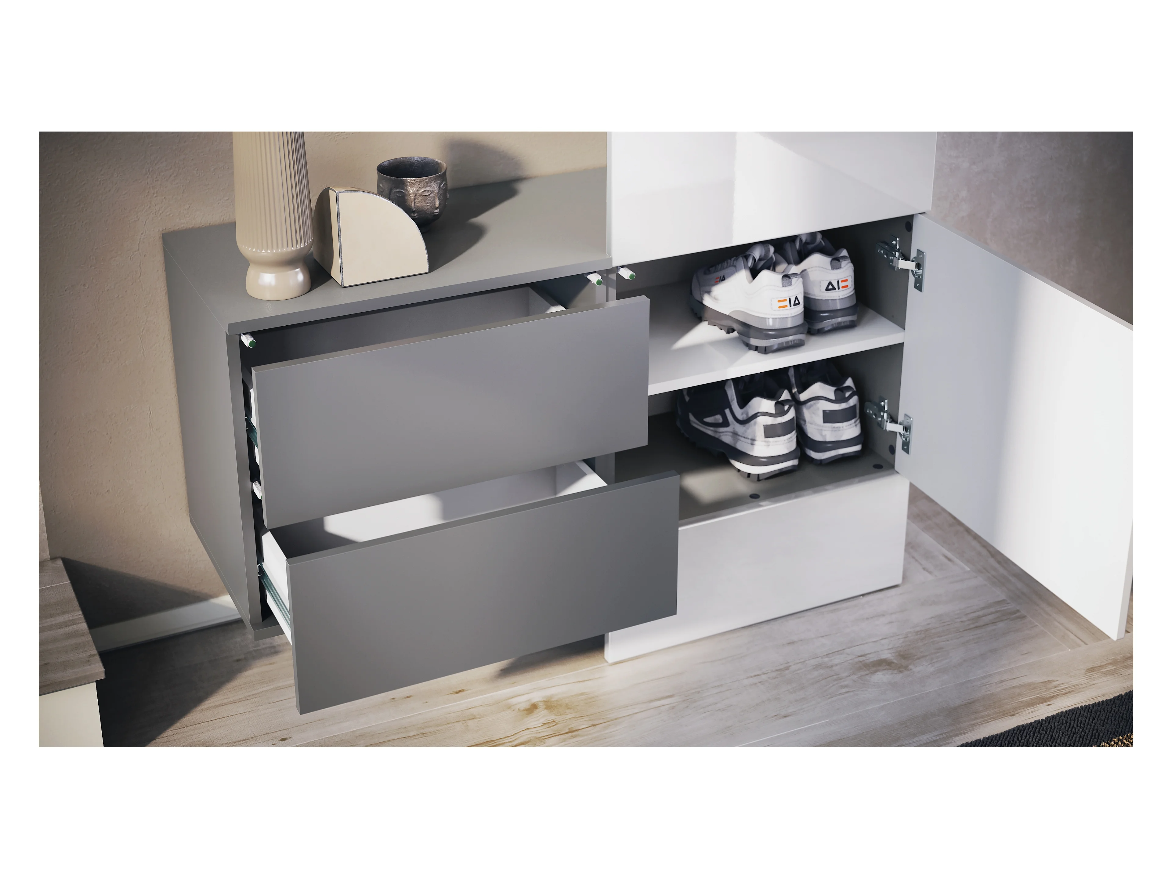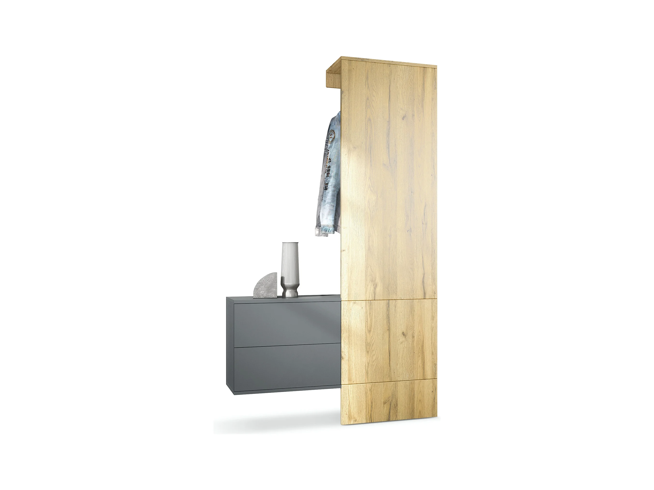 Penderie Carlton Set 2, Meuble d’entrée comprenant 1 panneau porte-manteau, 1 coffre à tiroir, anthracite mat/chêne nature (105 x 193 x 35 cm)