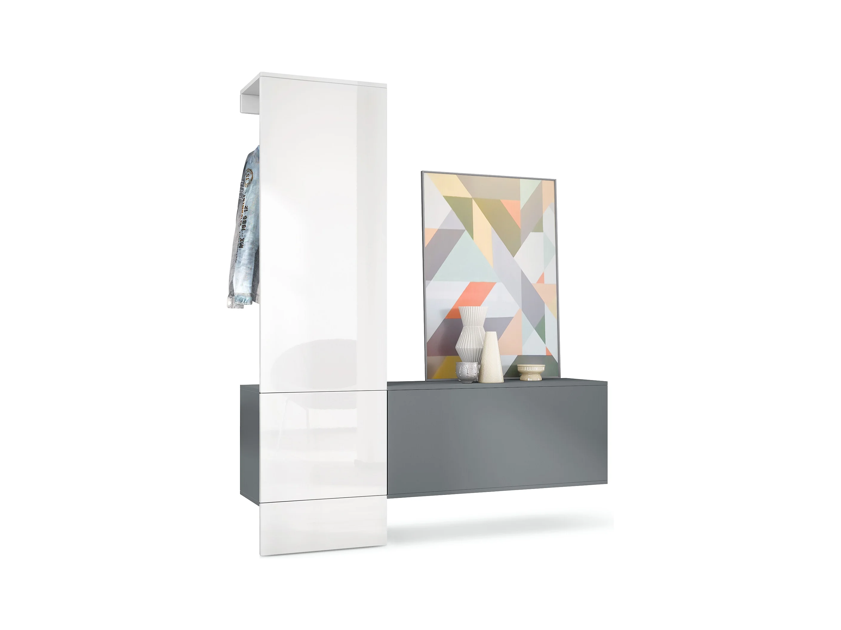 Penderie Carlton Set 4, Meuble d’entrée comprenant 1 panneau porte-manteaux, 1 module de commode, anthracite mat/blanc haute brillance (156,5 x 193 x 35 cm)