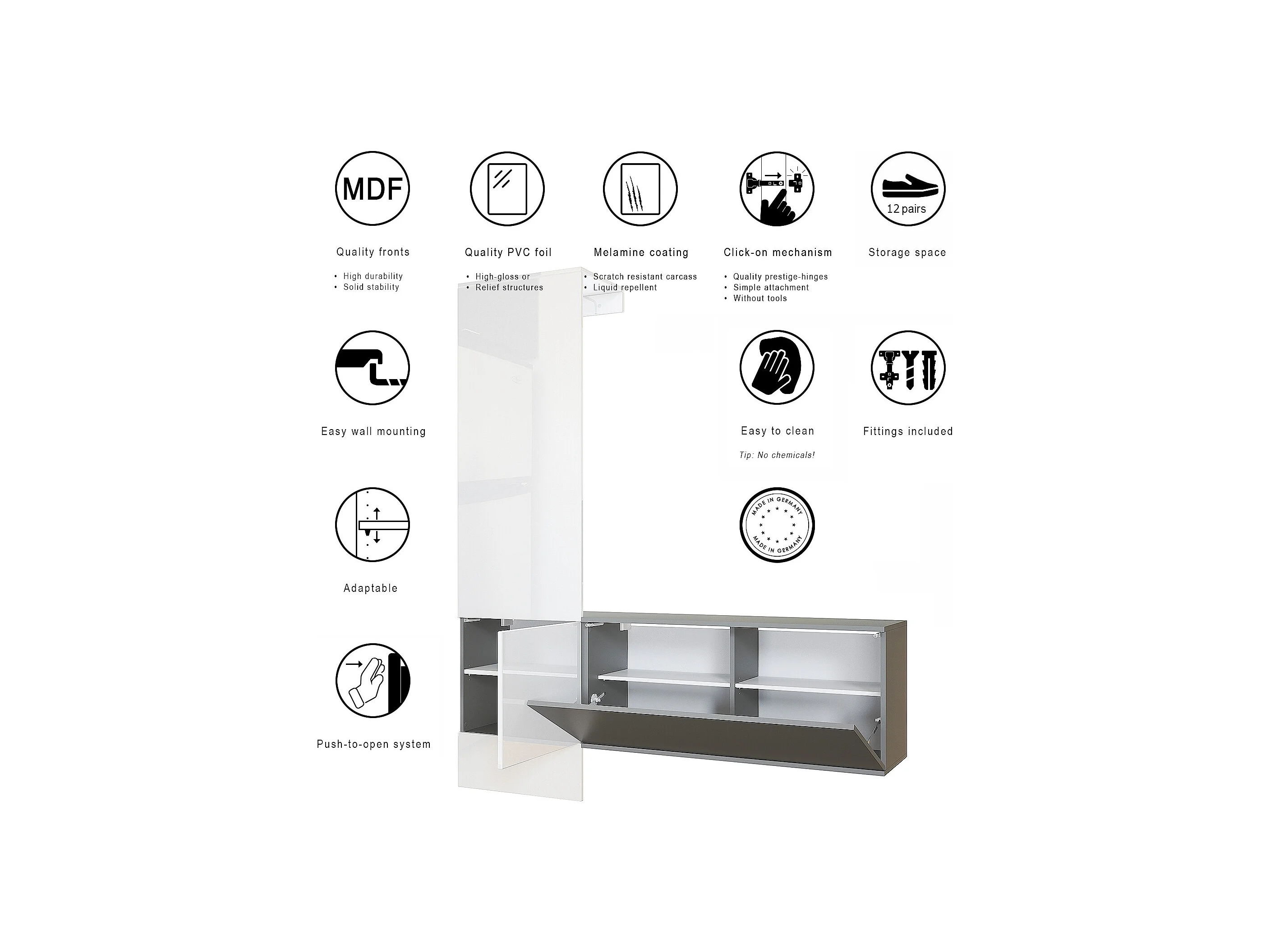 Penderie Carlton Set 4, Meuble d’entrée comprenant 1 panneau porte-manteaux, 1 module de commode, anthracite mat/graphite satiné mat (156,5 x 193 x 35 cm)