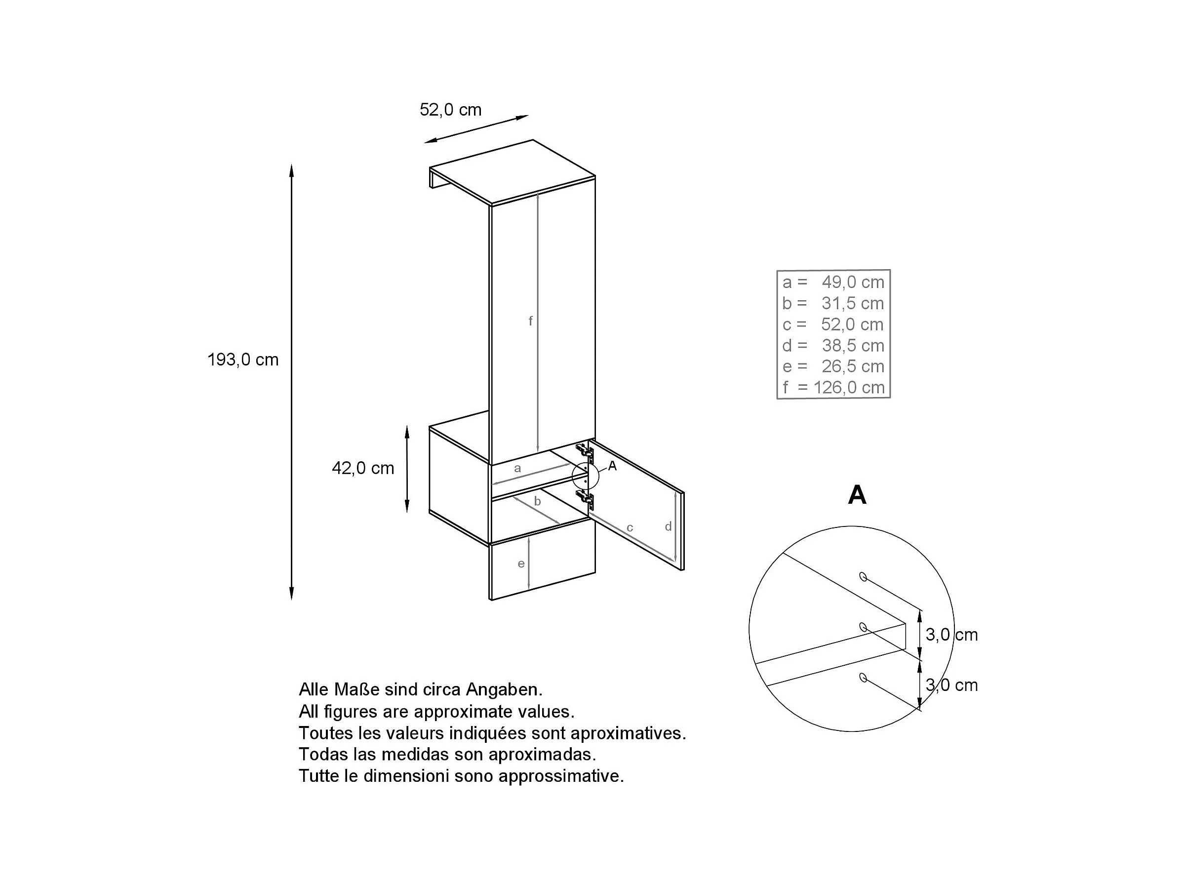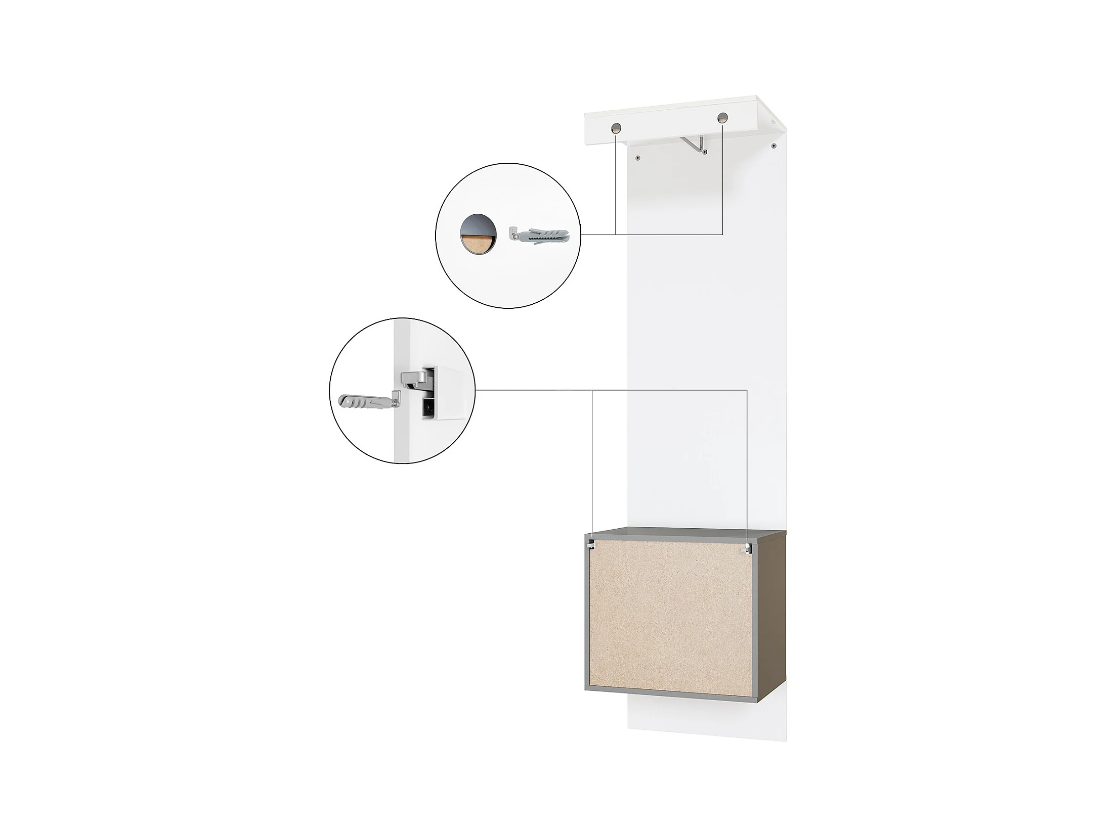 Penderie Carlton Set 5, Meuble d’entrée comprenant 1 panneau porte-manteau avec porte intégrée et 1 tringle, anthracite mat/crème brillant (52 x 193 x 35 cm)
