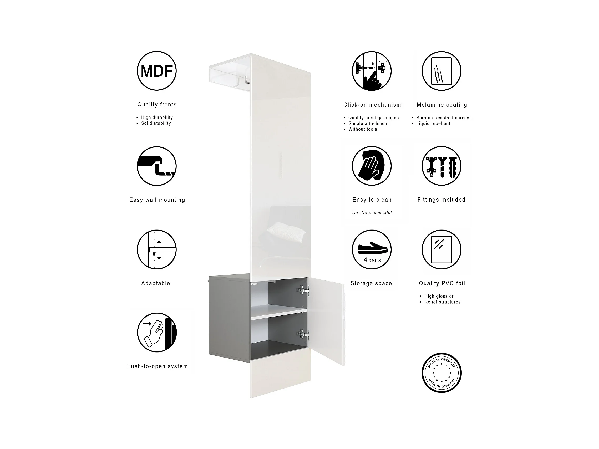 Penderie Carlton Set 5, Meuble d’entrée comprenant 1 panneau porte-manteau avec porte intégrée et 1 tringle, anthracite mat/noir brillant (52 x 193 x 35 cm)