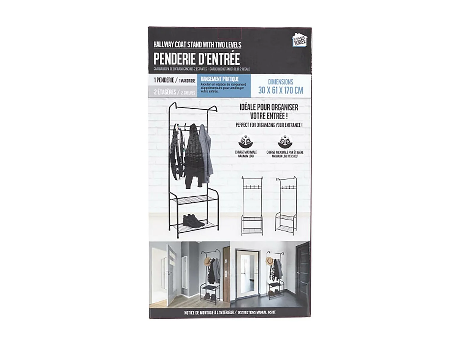 Penderie Dentree Crochets 2 Etages 61x30x170cm Noir