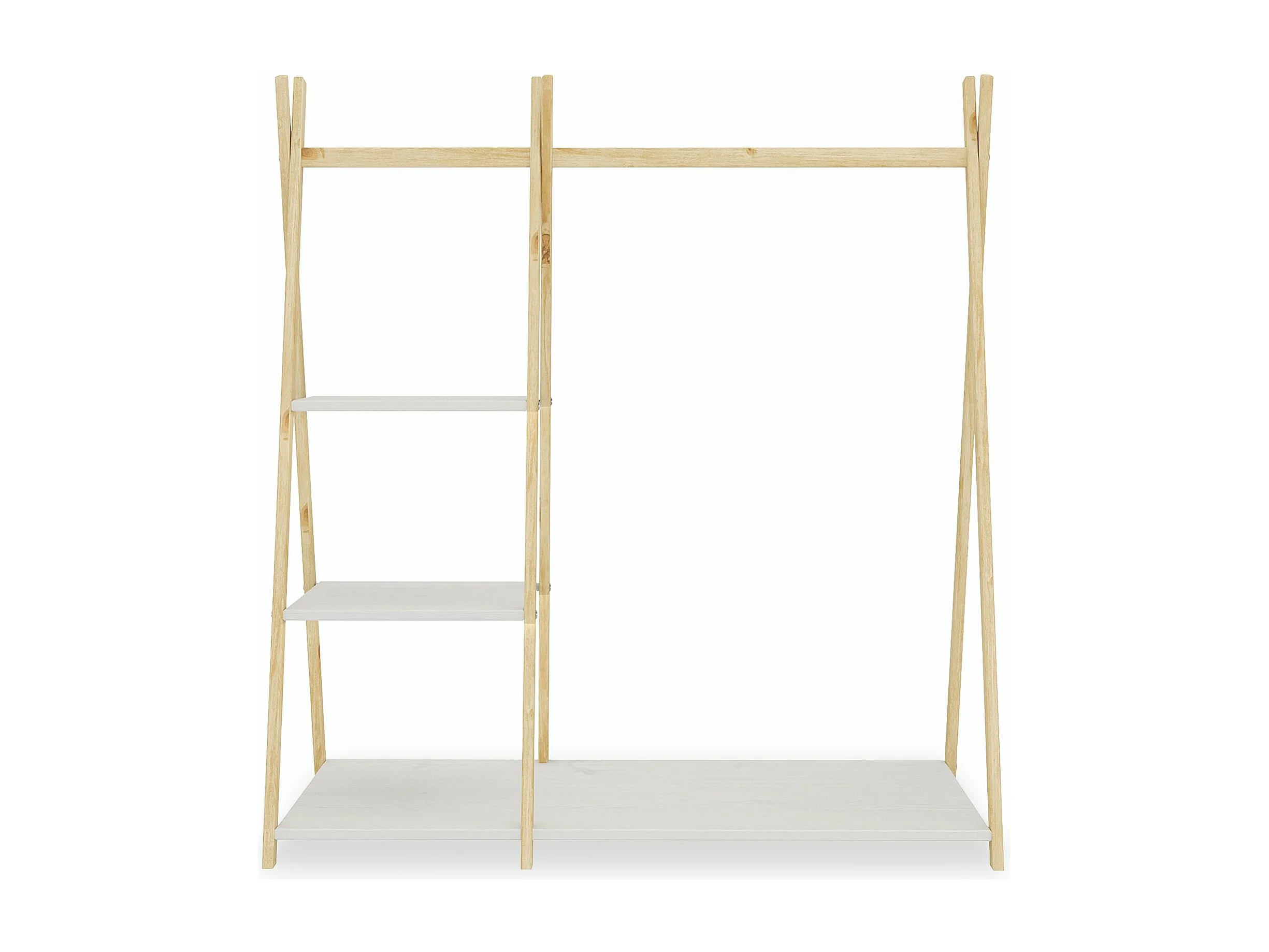 Penderie enfant SALLY en pin massif montessori avec 2 étagères, portant en bois couleur naturelle et blanc