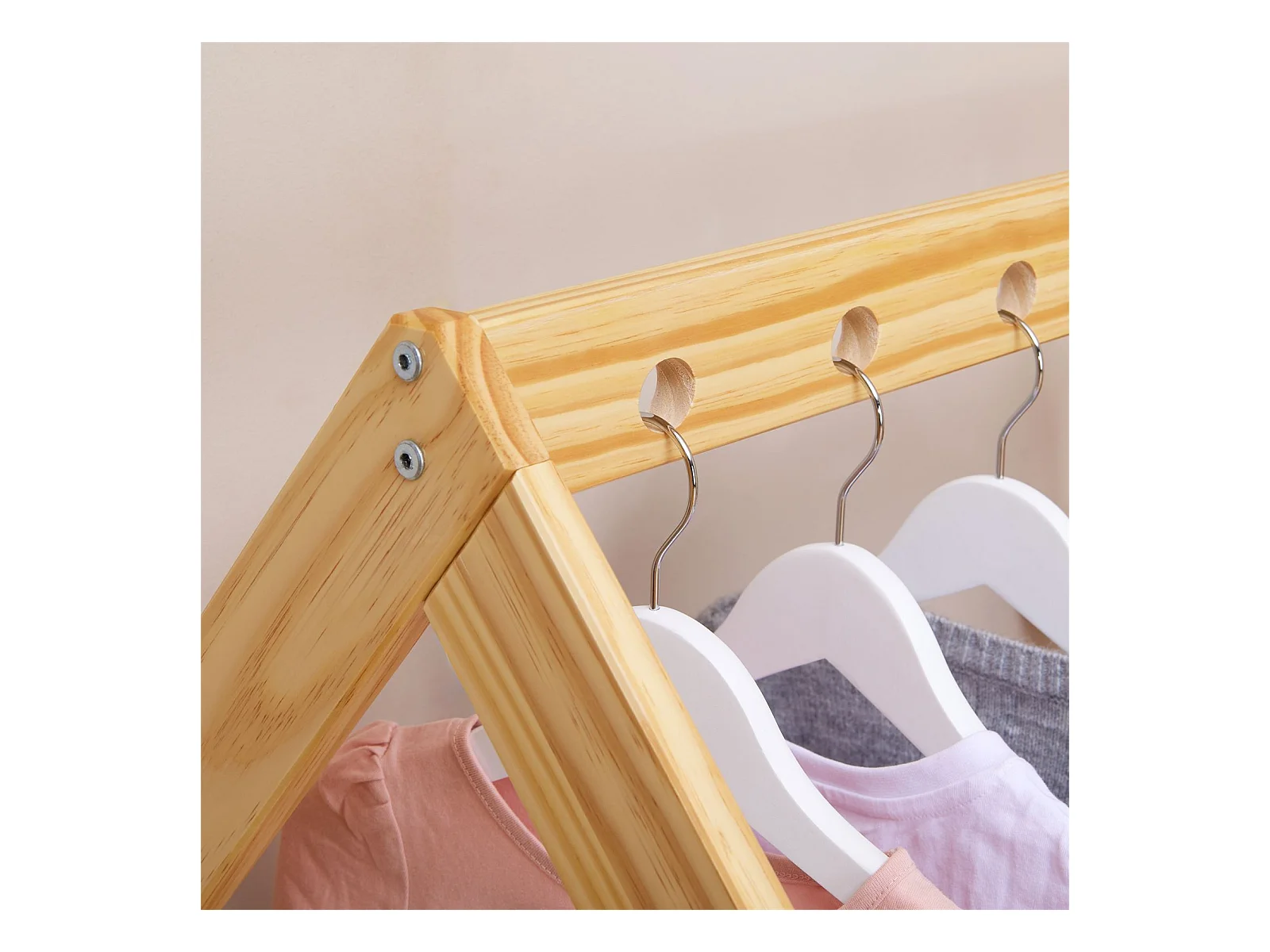 Portant Enfant SALLY en Pin Massif, Dressing Enfant avec Tringle à Vêtements, Penderie Enfant Montessori, Coloris naturel