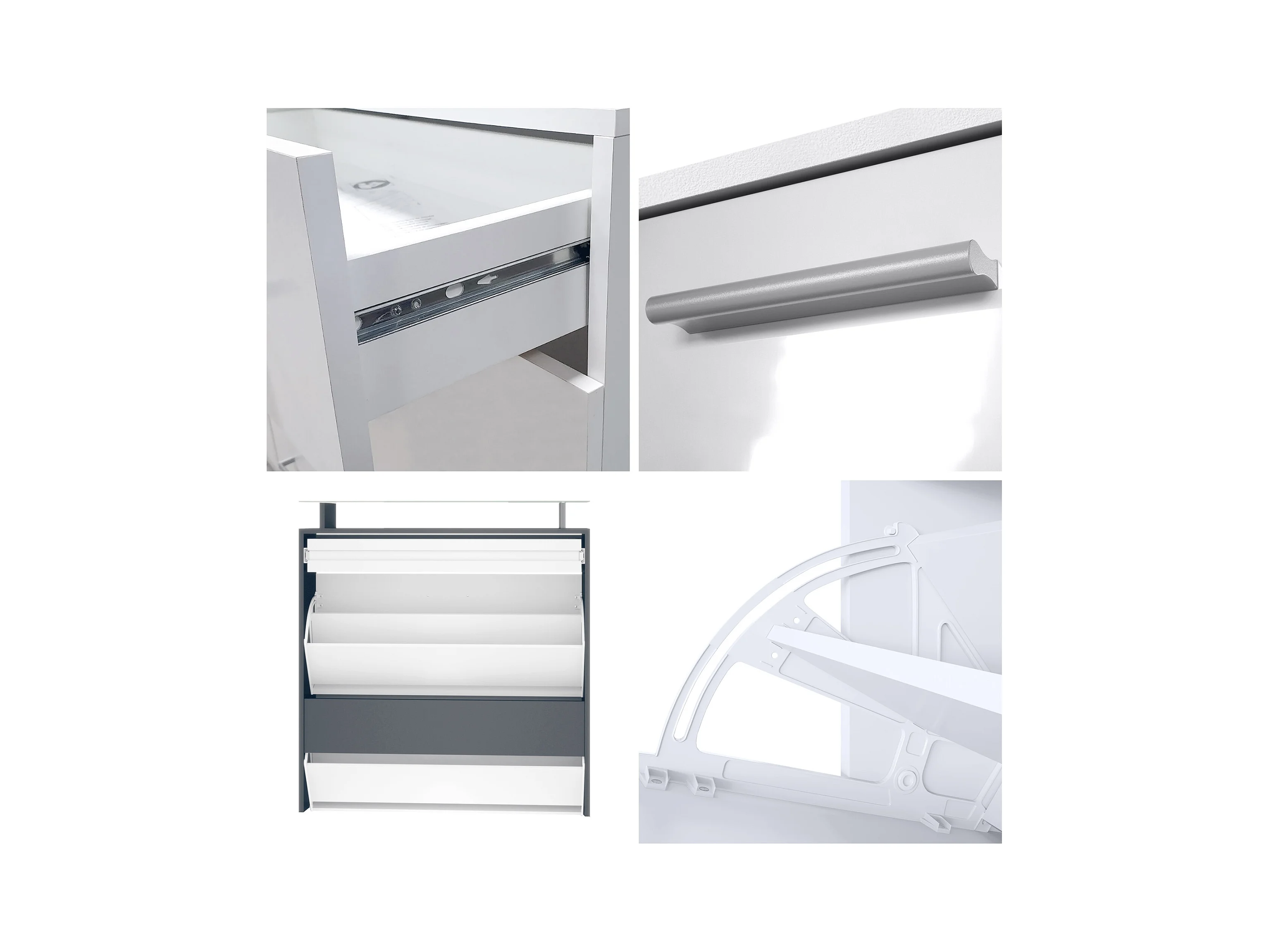 Penderie Malea, Meuble d’entrée comprenant 1 commode à chaussures murale, 1 miroir et 2 panneaux porte-manteaux, Anthracite mat/Blanc brillant, LED RVB inclus