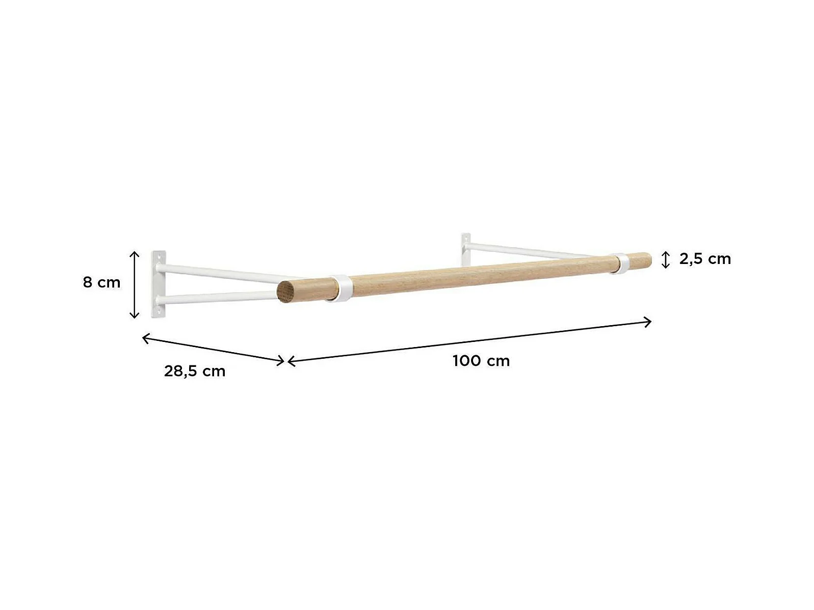 Etagère penderie murale bois et métal blanc 90x28,5cm