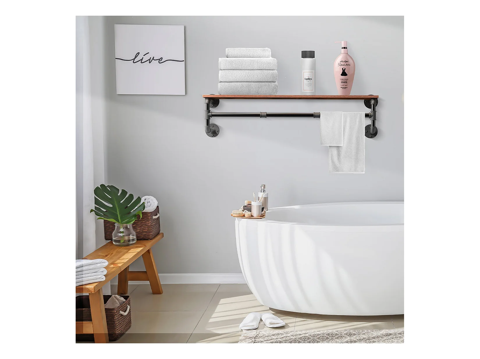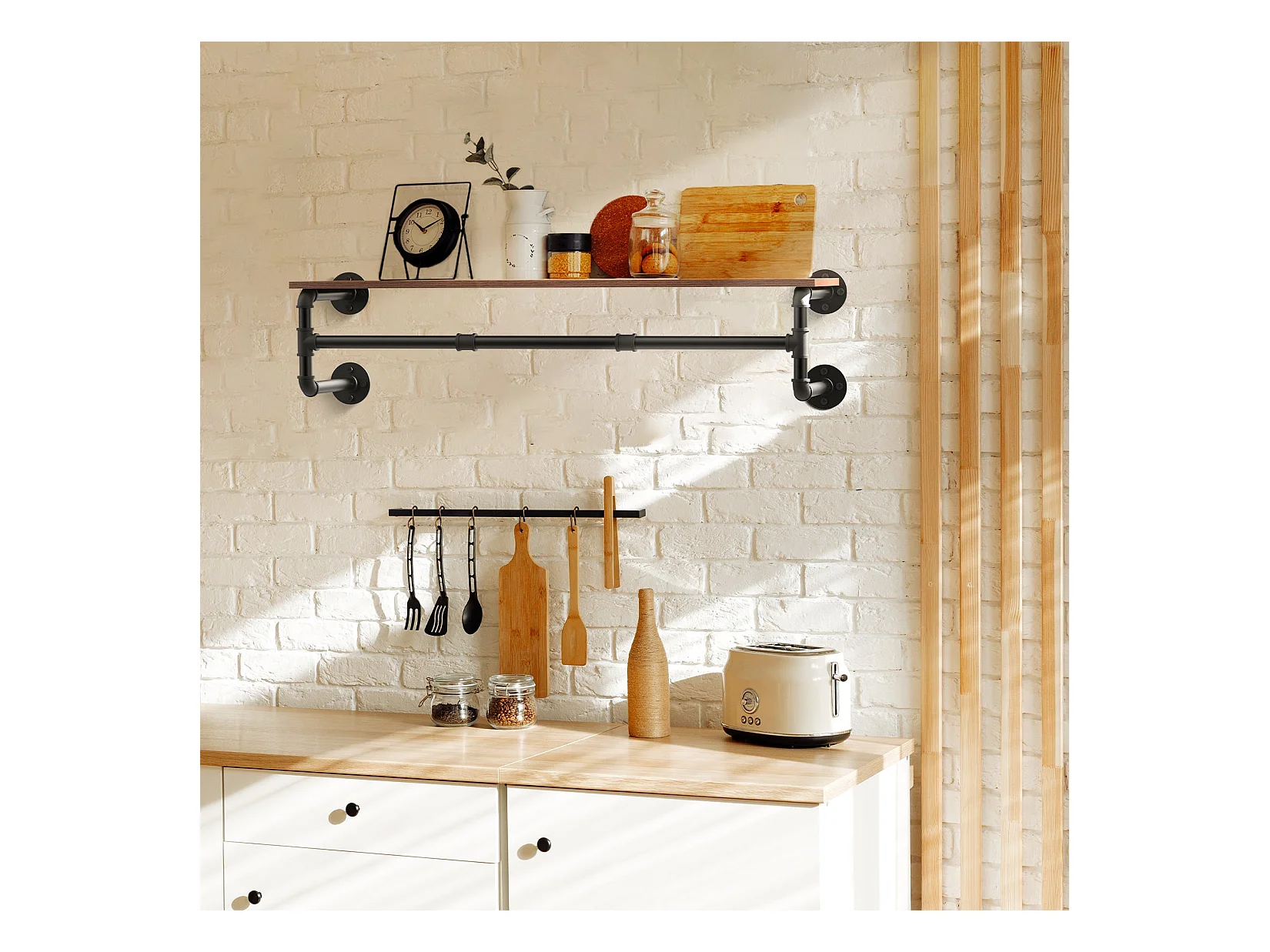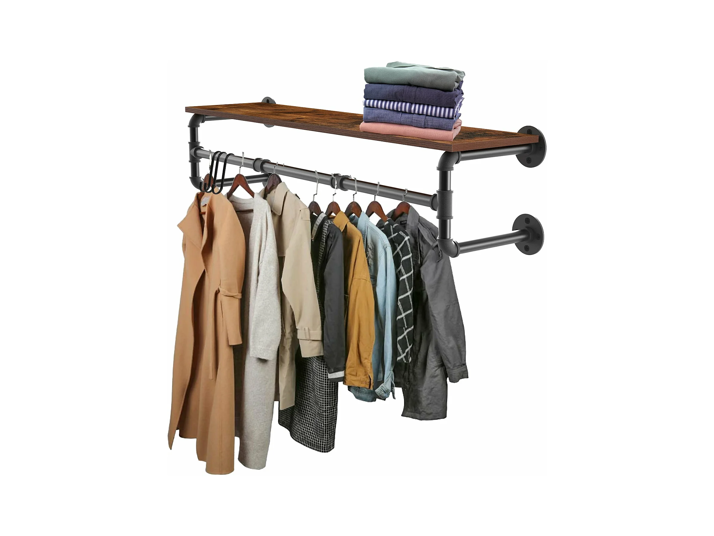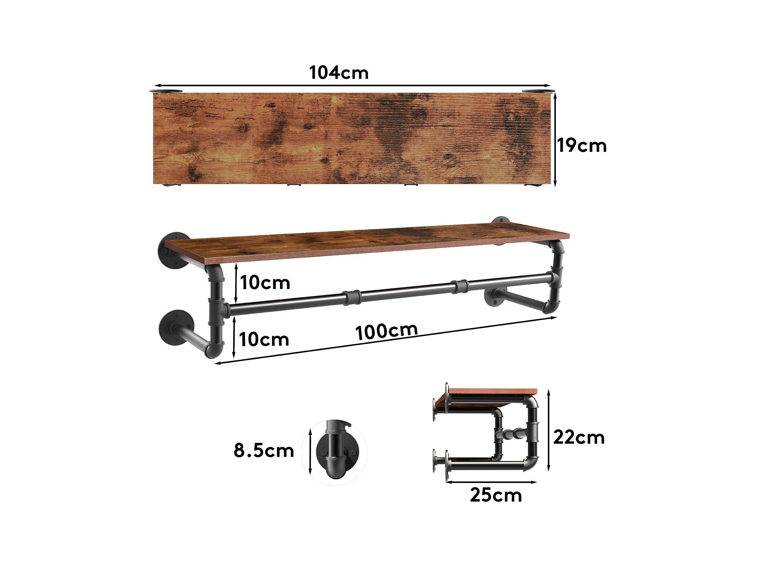 Penderie murale vêtement suspendue industriel portant à vêtement solide porte manteaul design avec étagère amovible 100x25x22cm