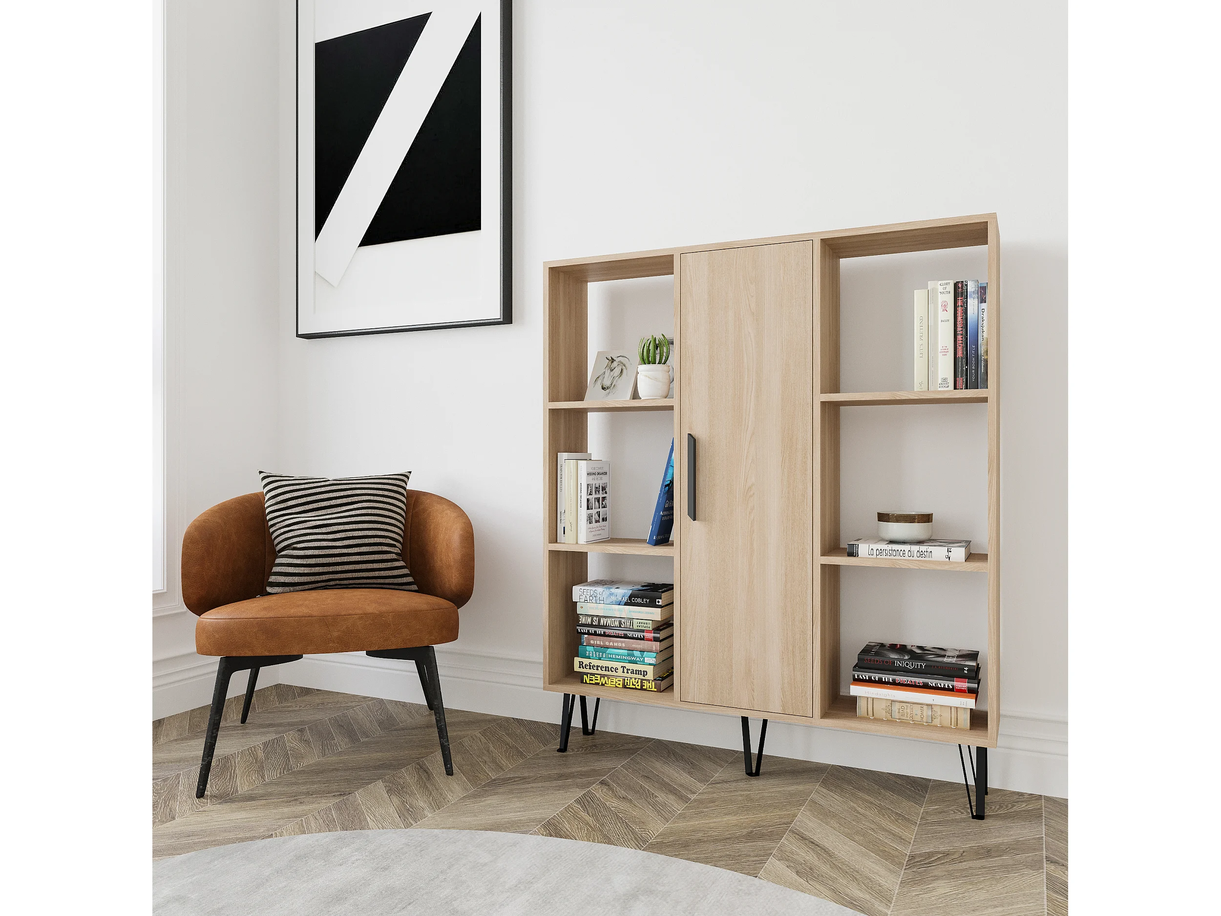 Patrick Bibliothèque 3 Etagères Ouverte et Armoire | Design Minimalist (Chêne)