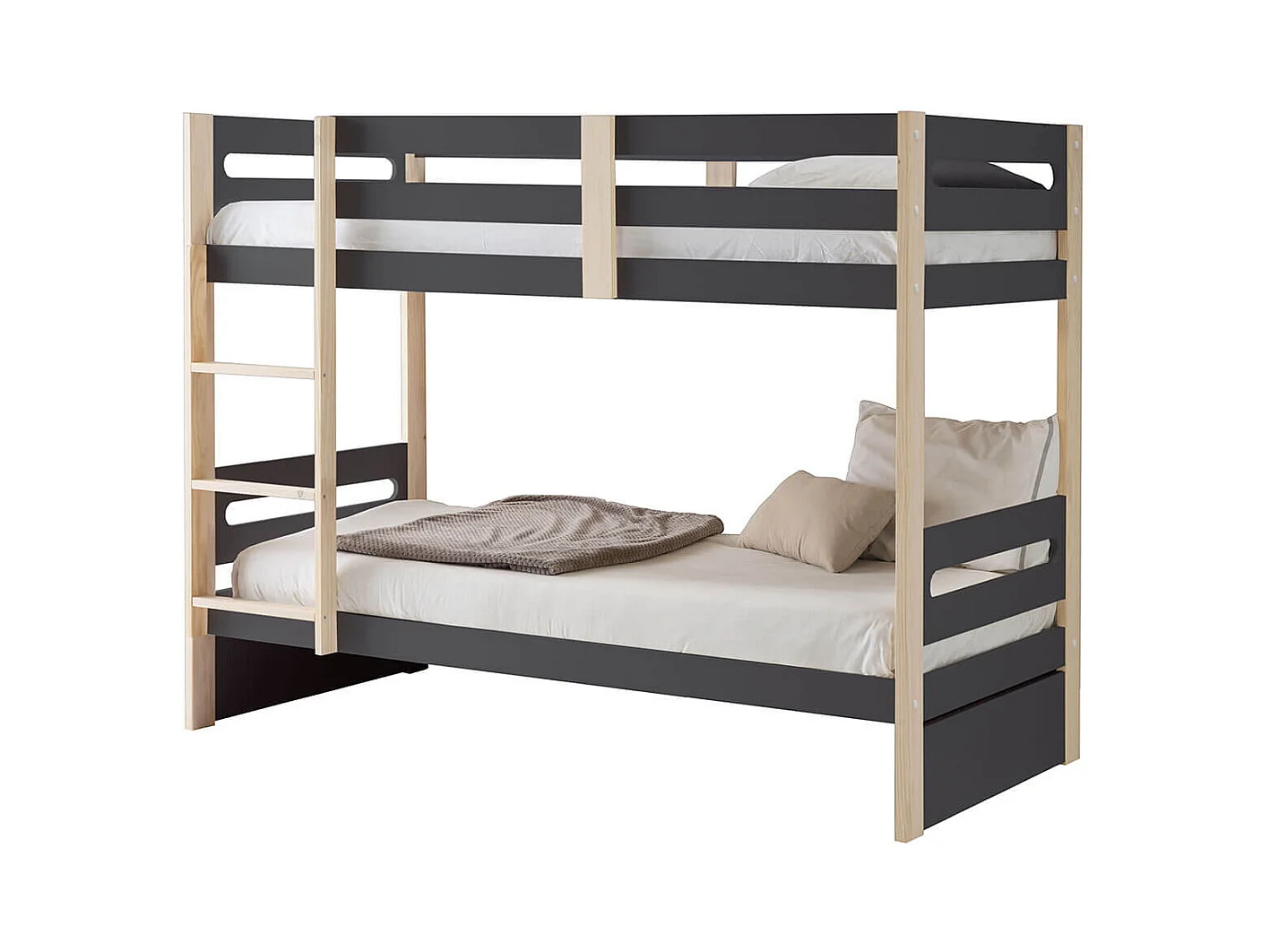 PERAUD - Lits Superposés 90x190cm Gris Anthracite et Naturel