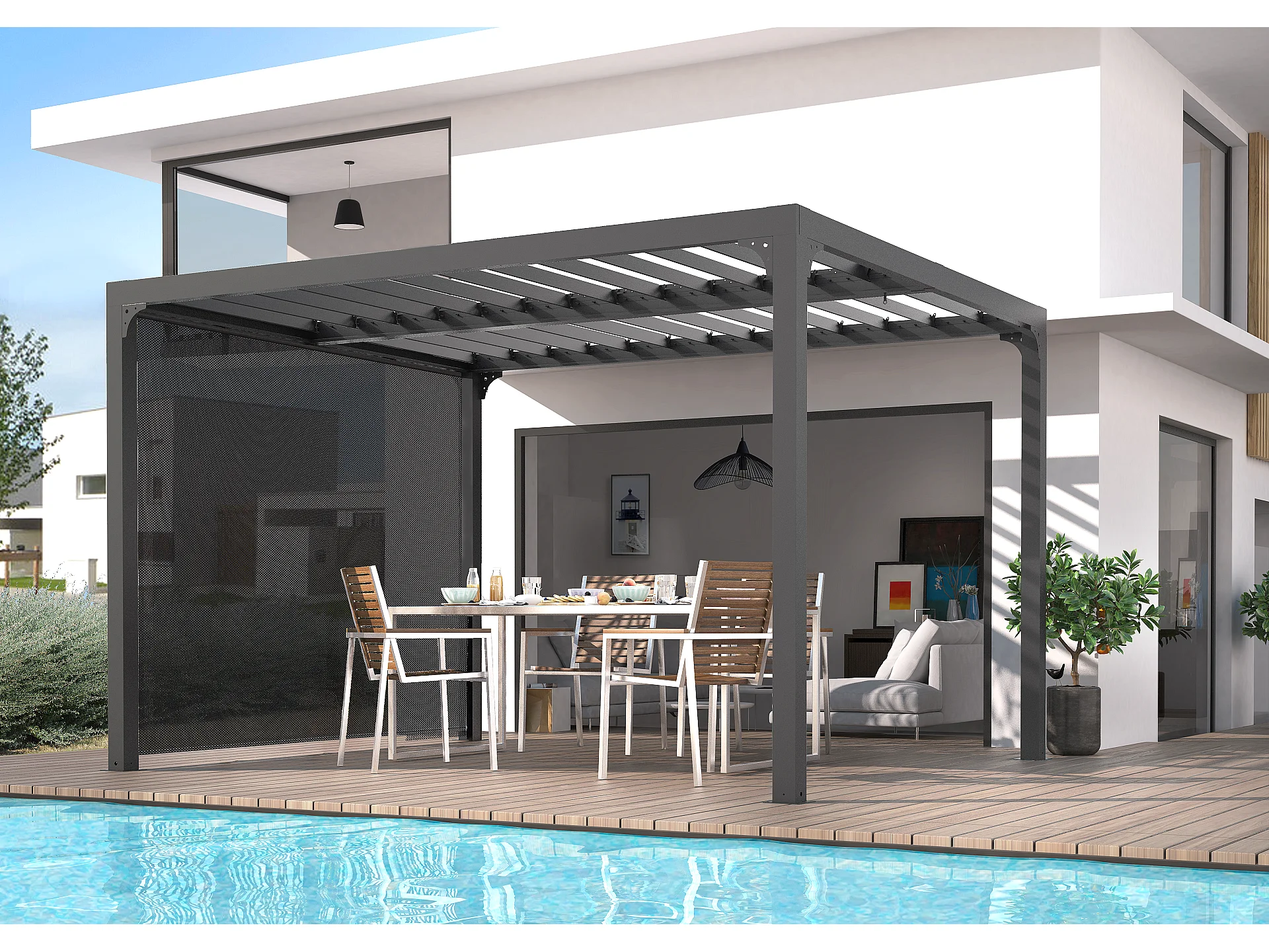 PERBIR.30-Rideau pour pergola bioclimatique PER 3630 BI et PER 2430 BI avec rail pour côte 3 m couleur gris