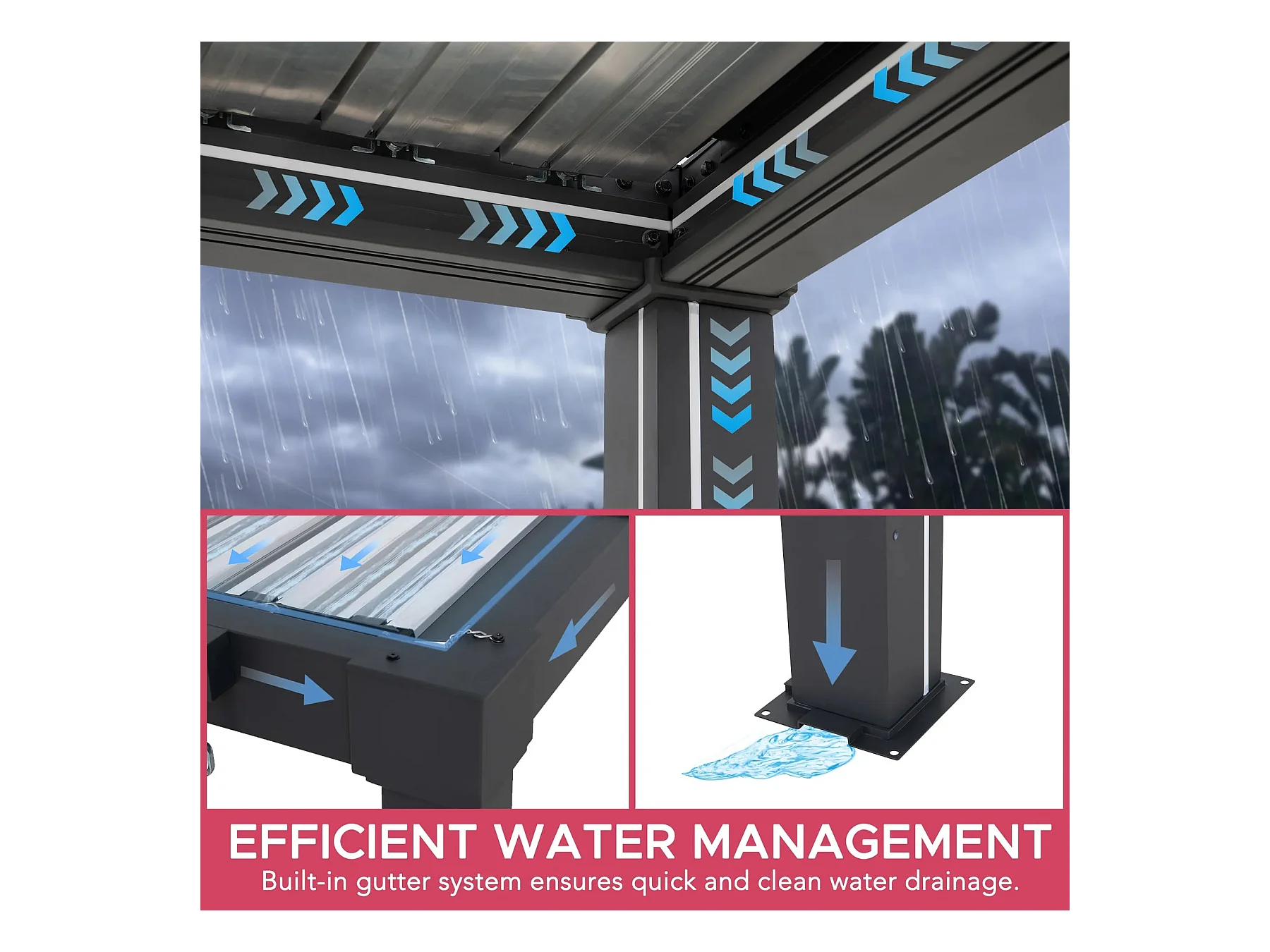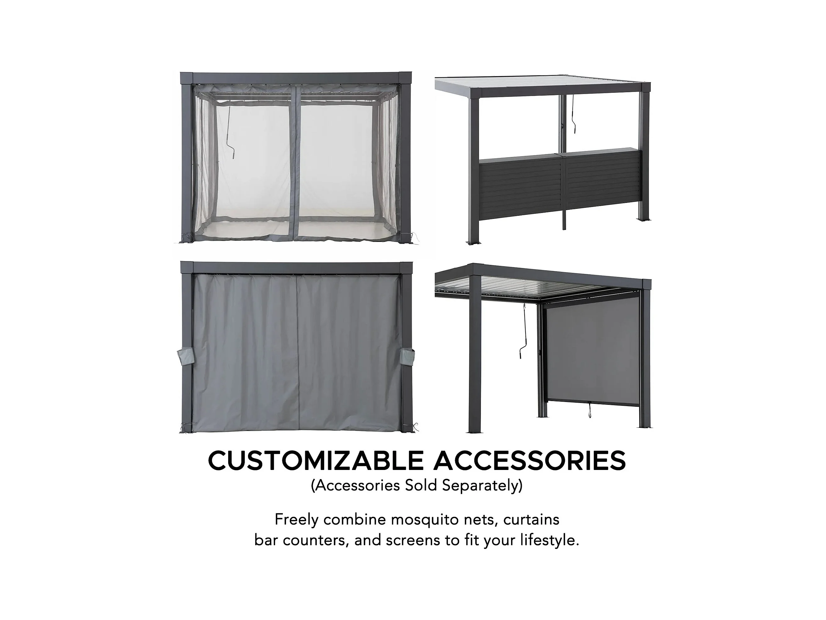 Pergola à lames avec éclairage LED solaire et toit réglable Matterhorn 306 cm x 306 cm