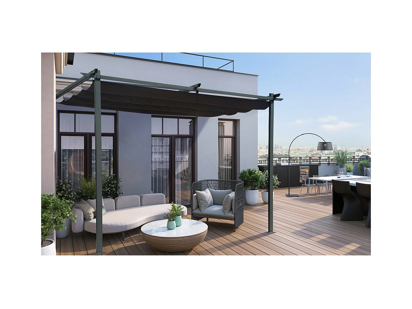 Pergola adossée avec toit rétractable - 3 x 3 m - Gris anthracite