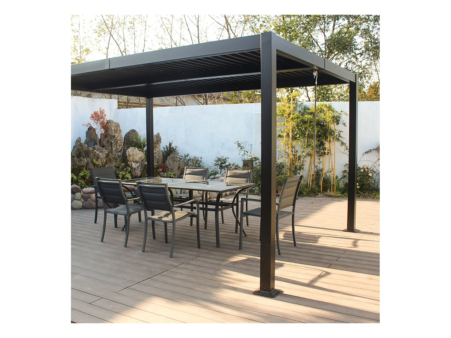 Pergola bioclimatique 4x3m structure et lames en aluminium gris anthracite NAXOS