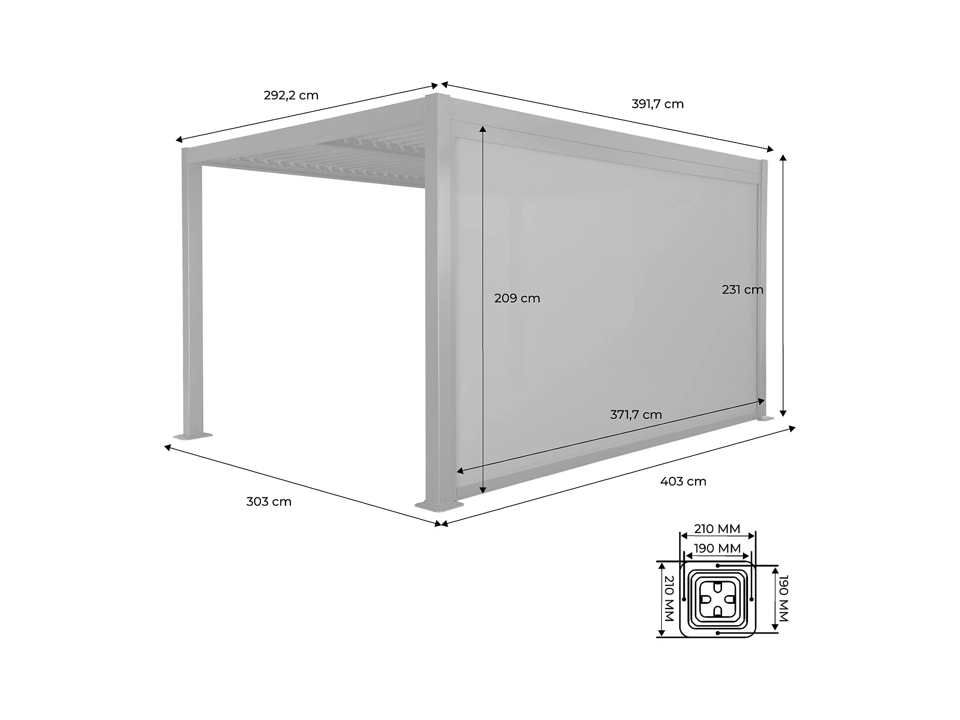 Pergola bioclimatique aluminium et acier 3x4m lames orientables + store 4m PALACE anthracite
