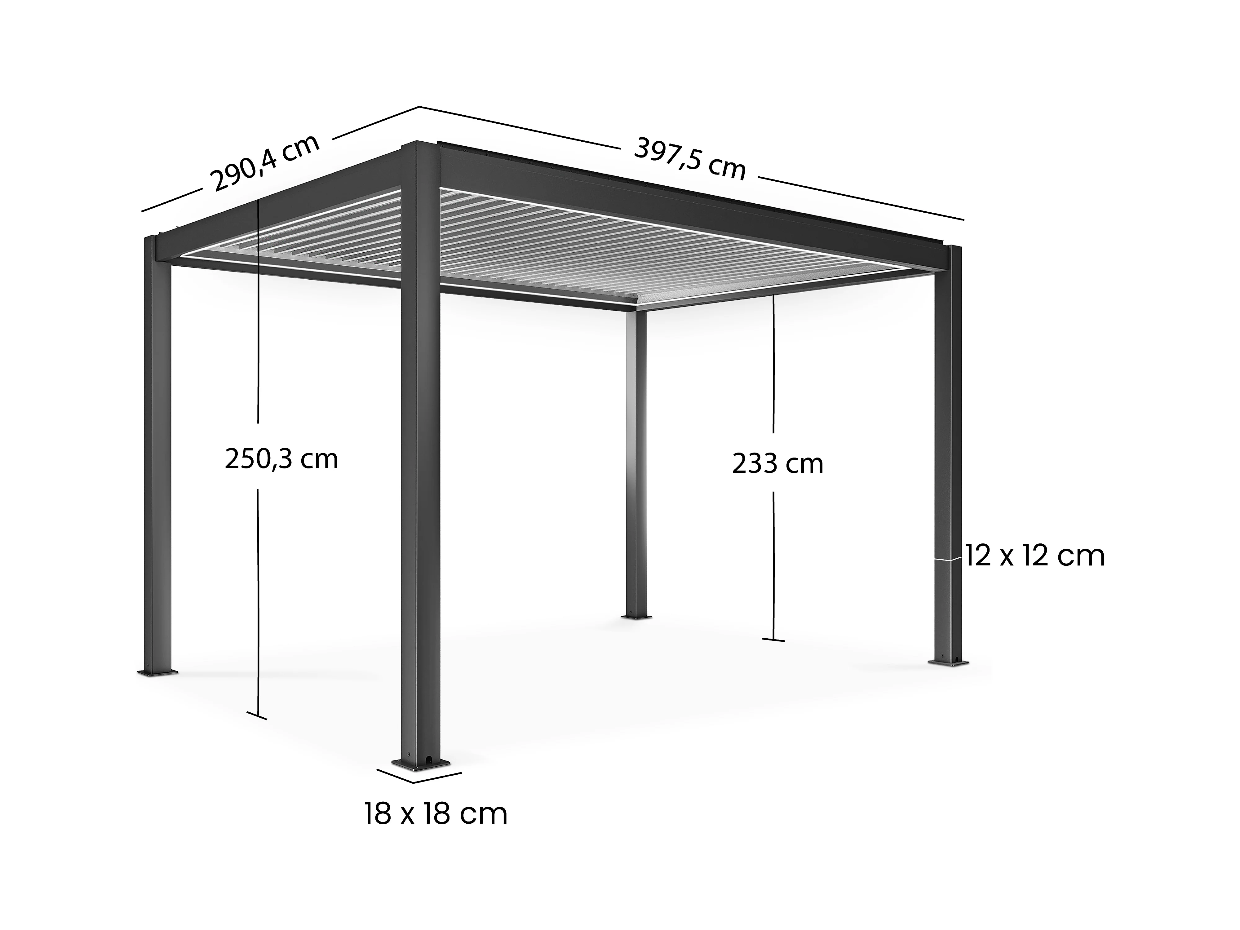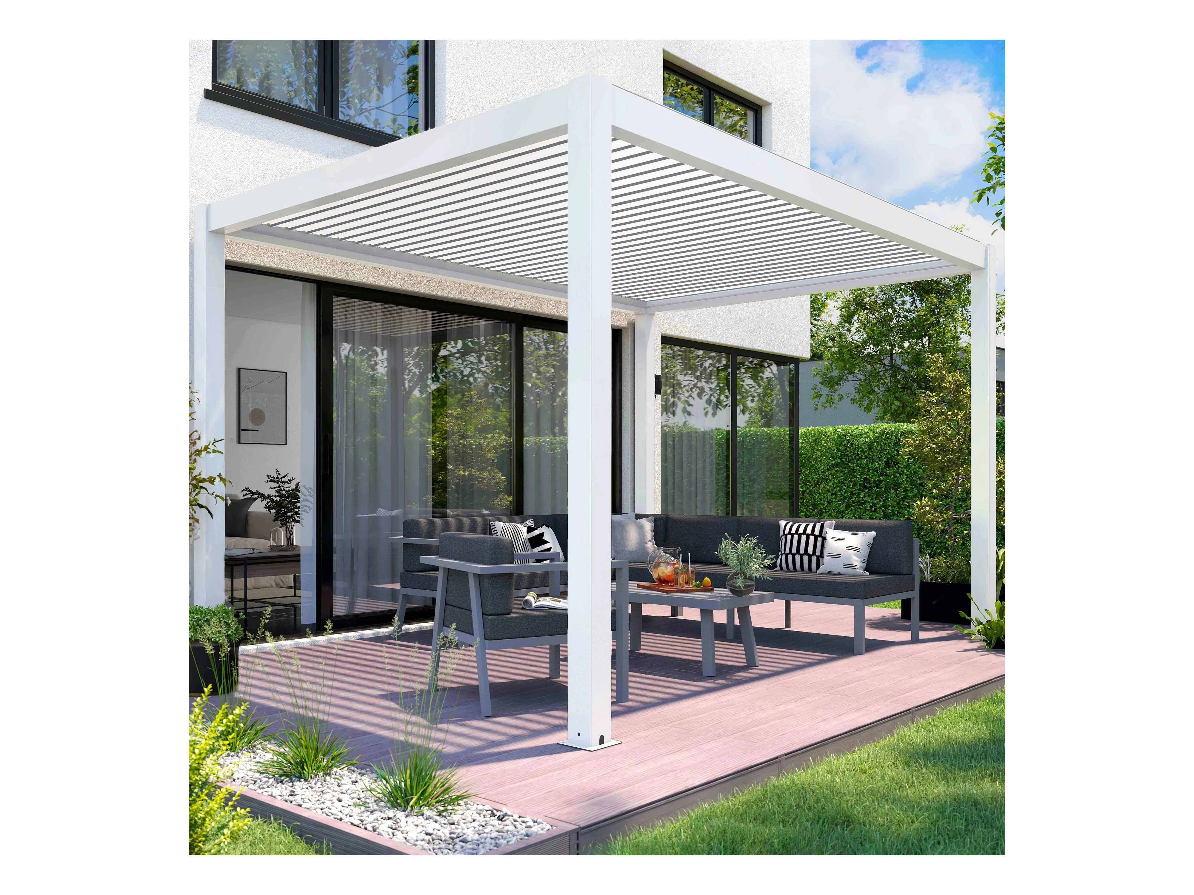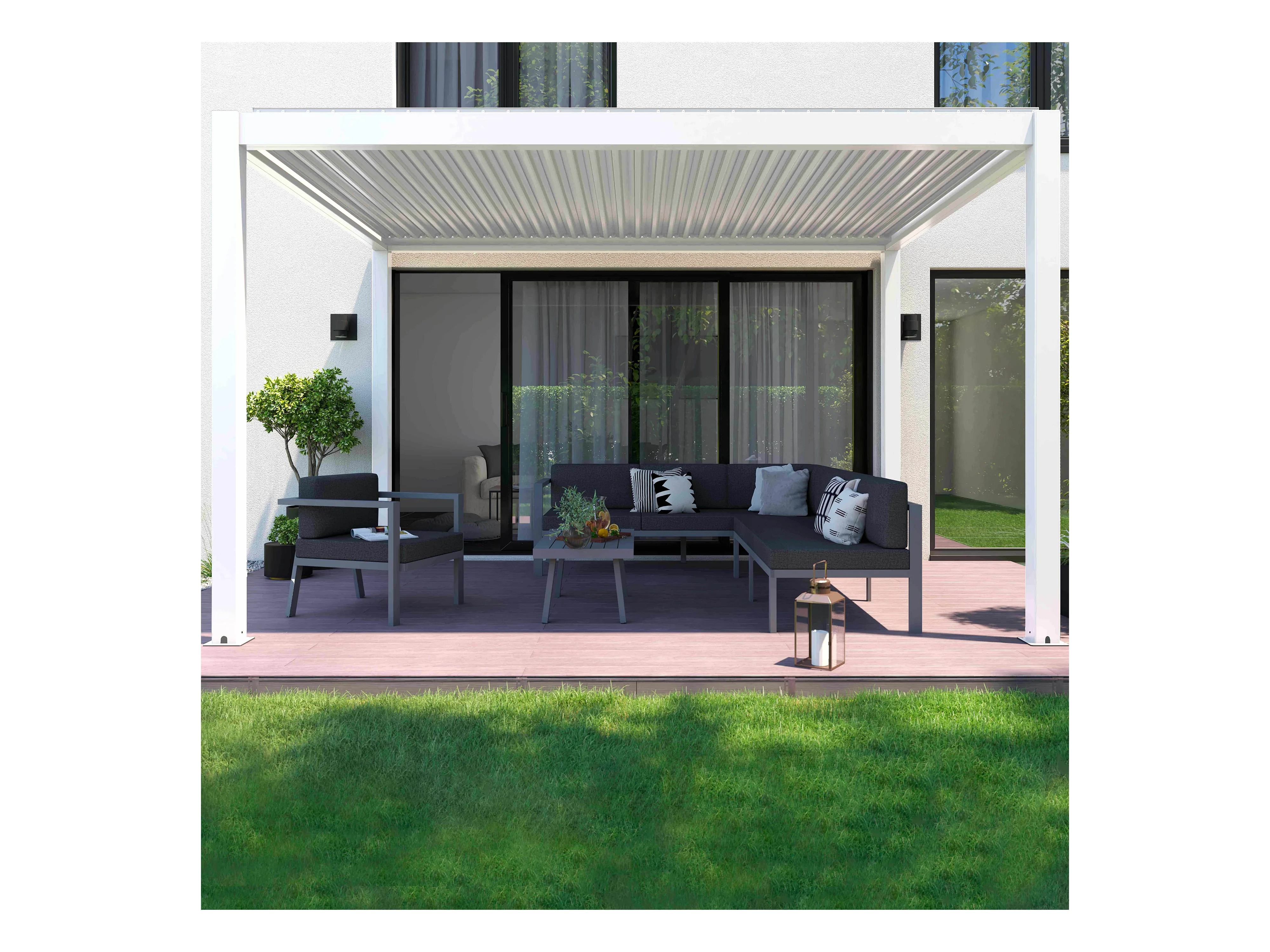 Pergola bioclimatique autoportée motorisée et éclairée 3x4 m blanc