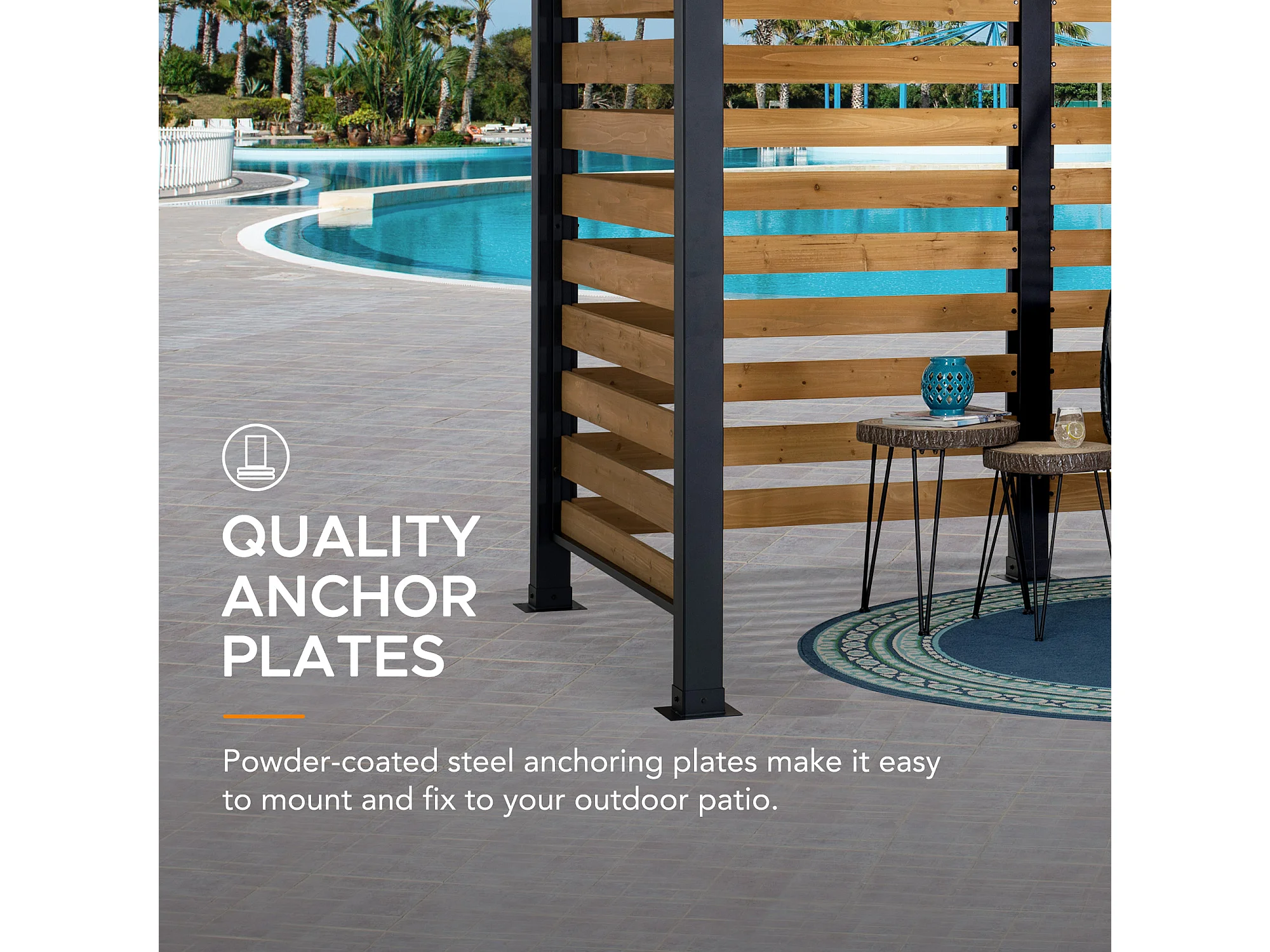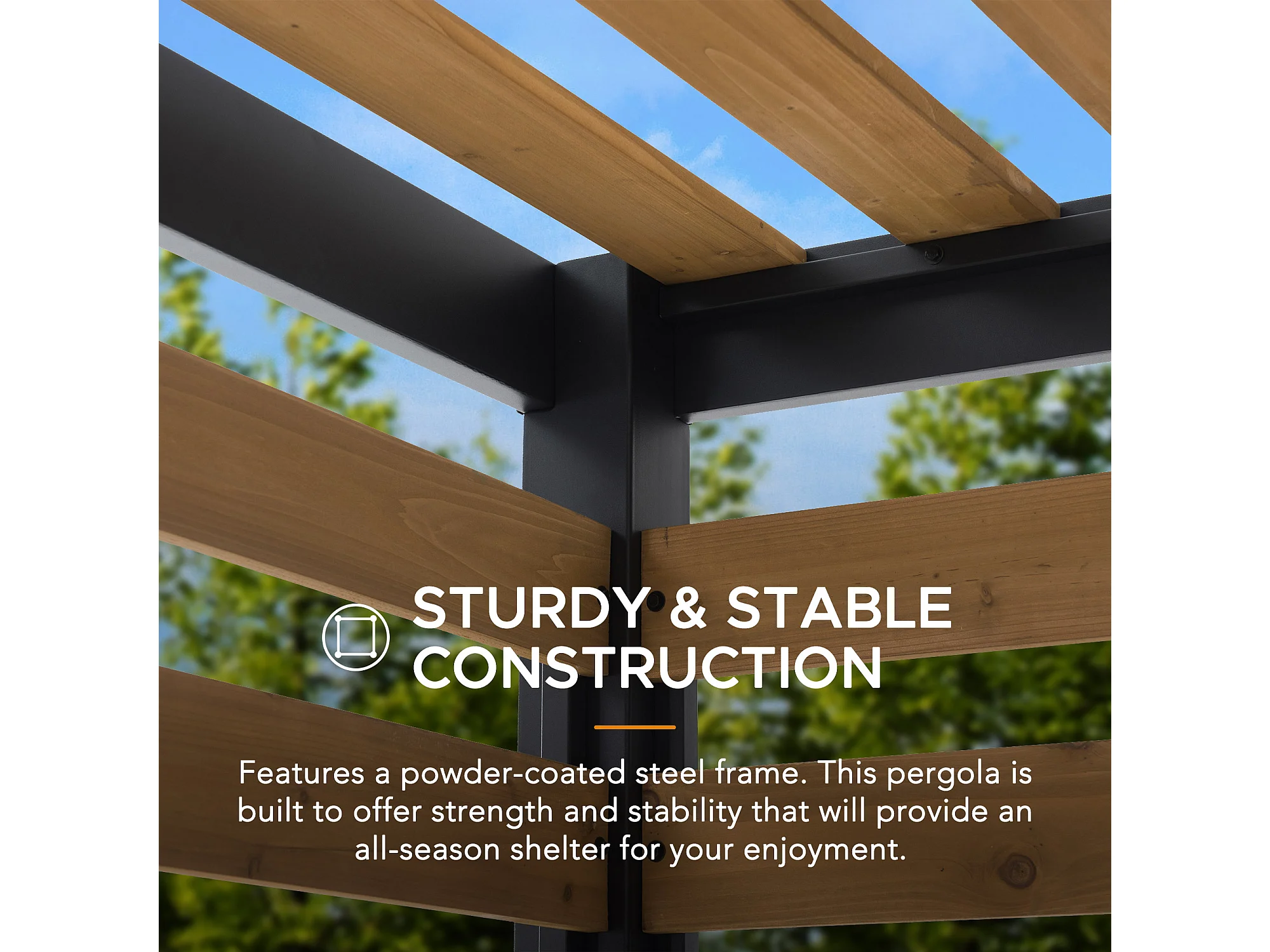 Pergola d'extérieur moderne en acier et bois pour jardin MARAO 191 cm x 313 cm