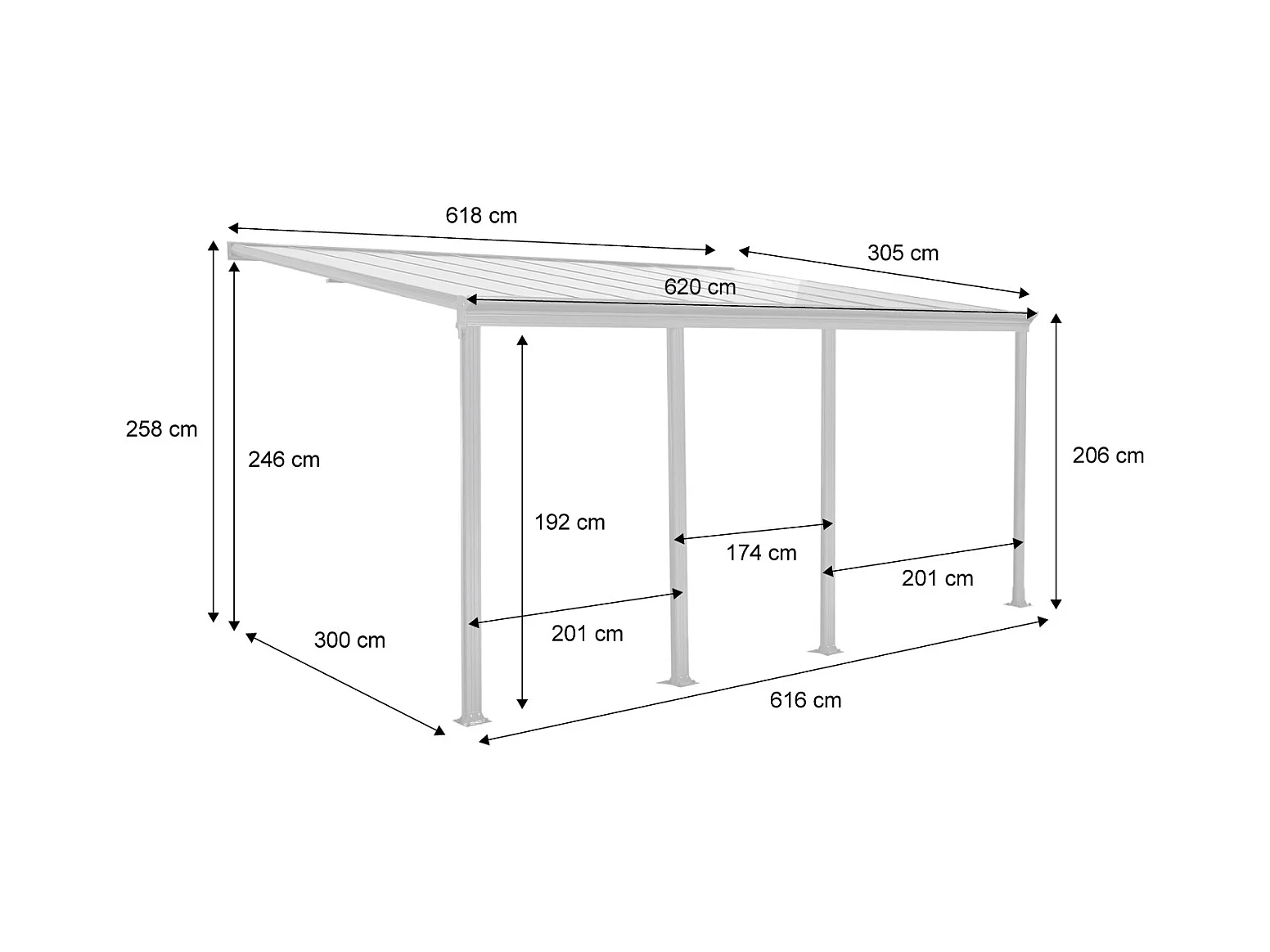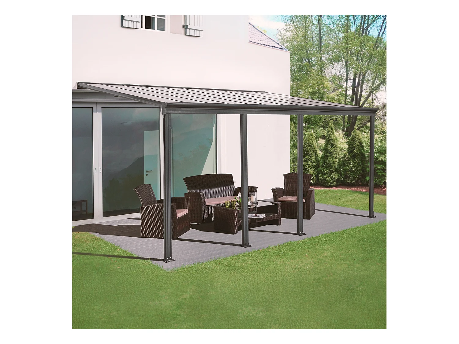 Pergola murale 3x6m anthracite aluminium et polycarbonate avec gouttière. pergola adossée