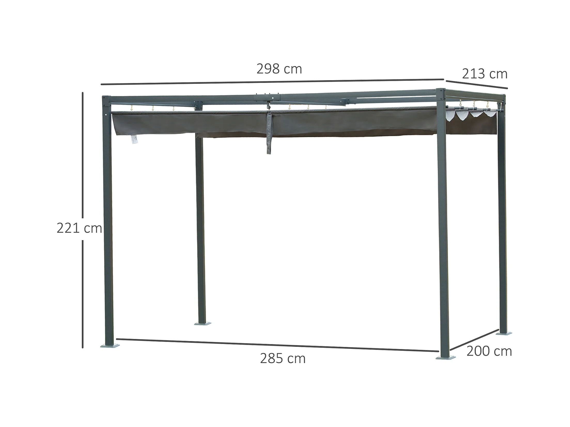 Pergola rétractable 2,98L x 2,13l x 2,22H m structure métal époxy anticorrosion toile polyester haute densité 180 g/m² incluse gris