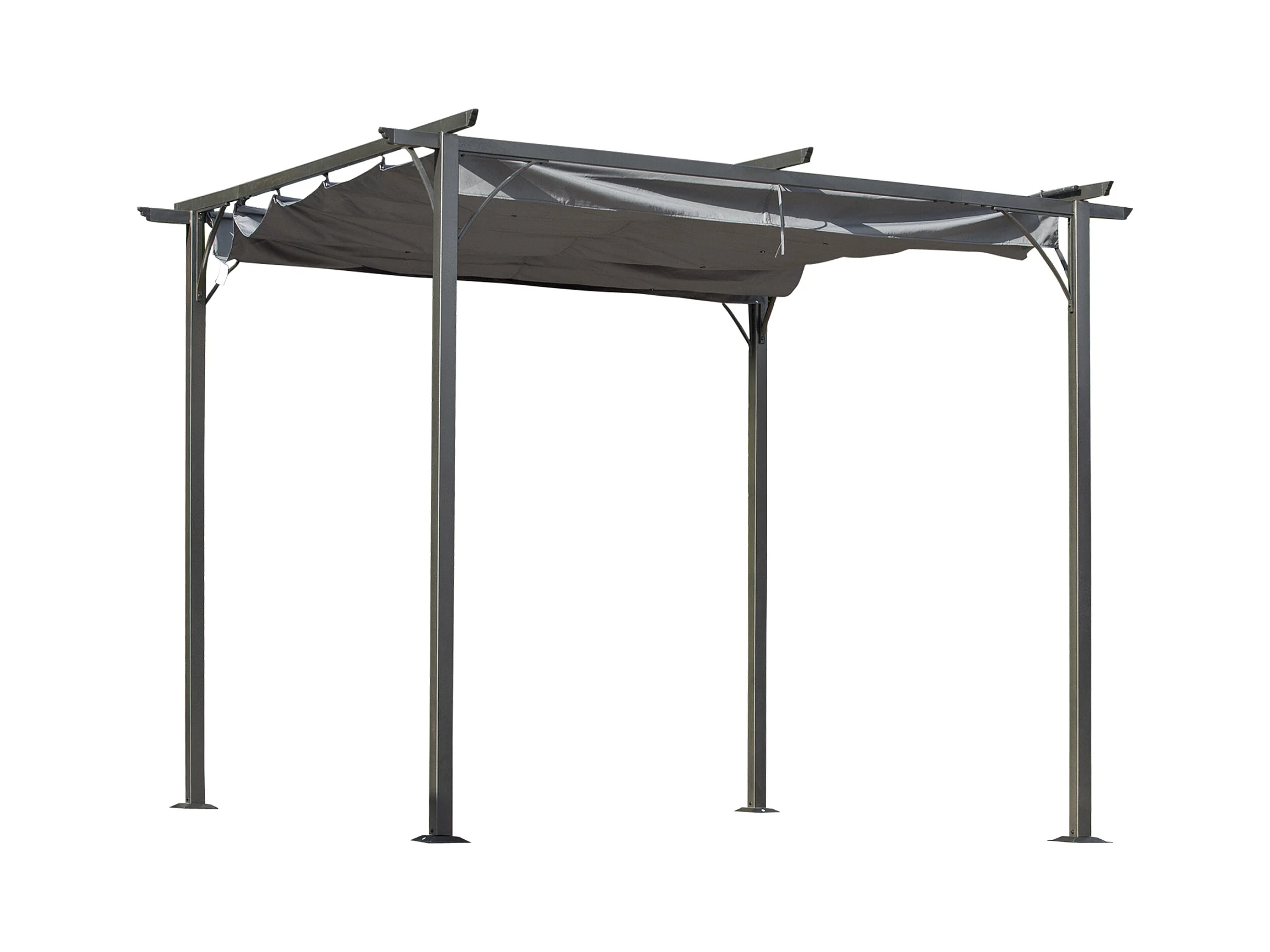Pergola rétractable 3L x 3l x 2,30H m structure métal époxy anticorrosion noire + toile polyester haute densité 180 g/m² incluse gris