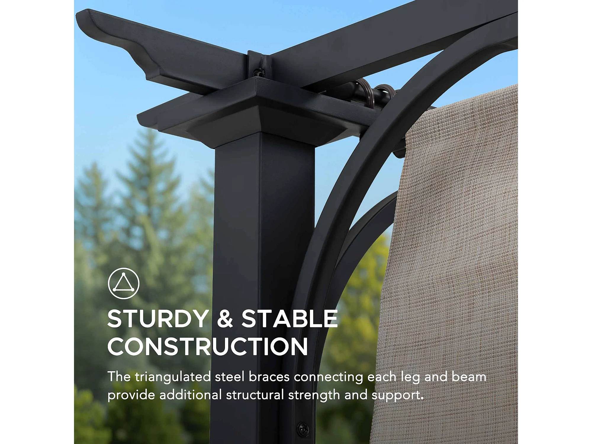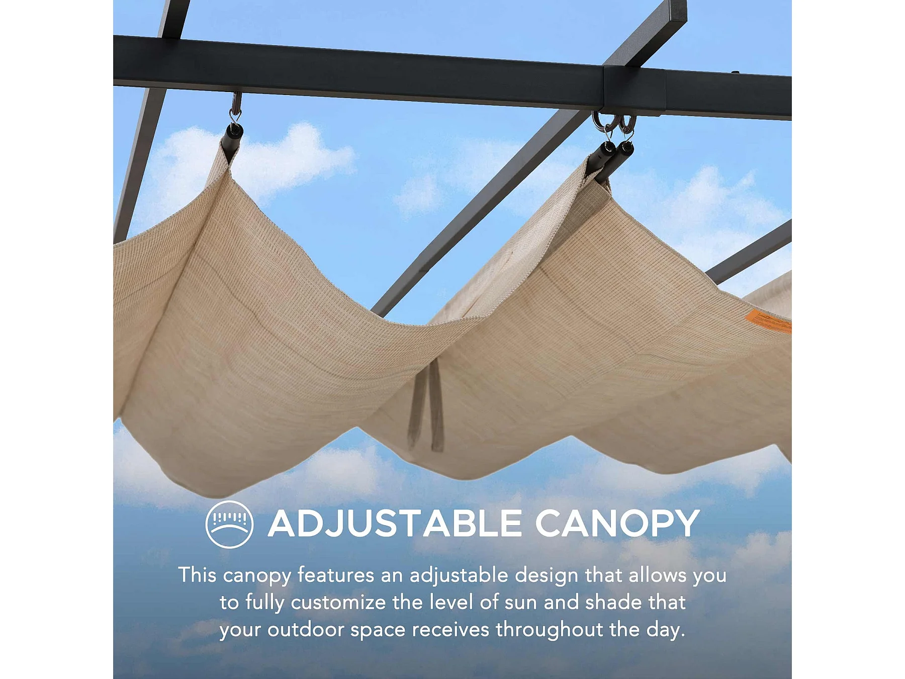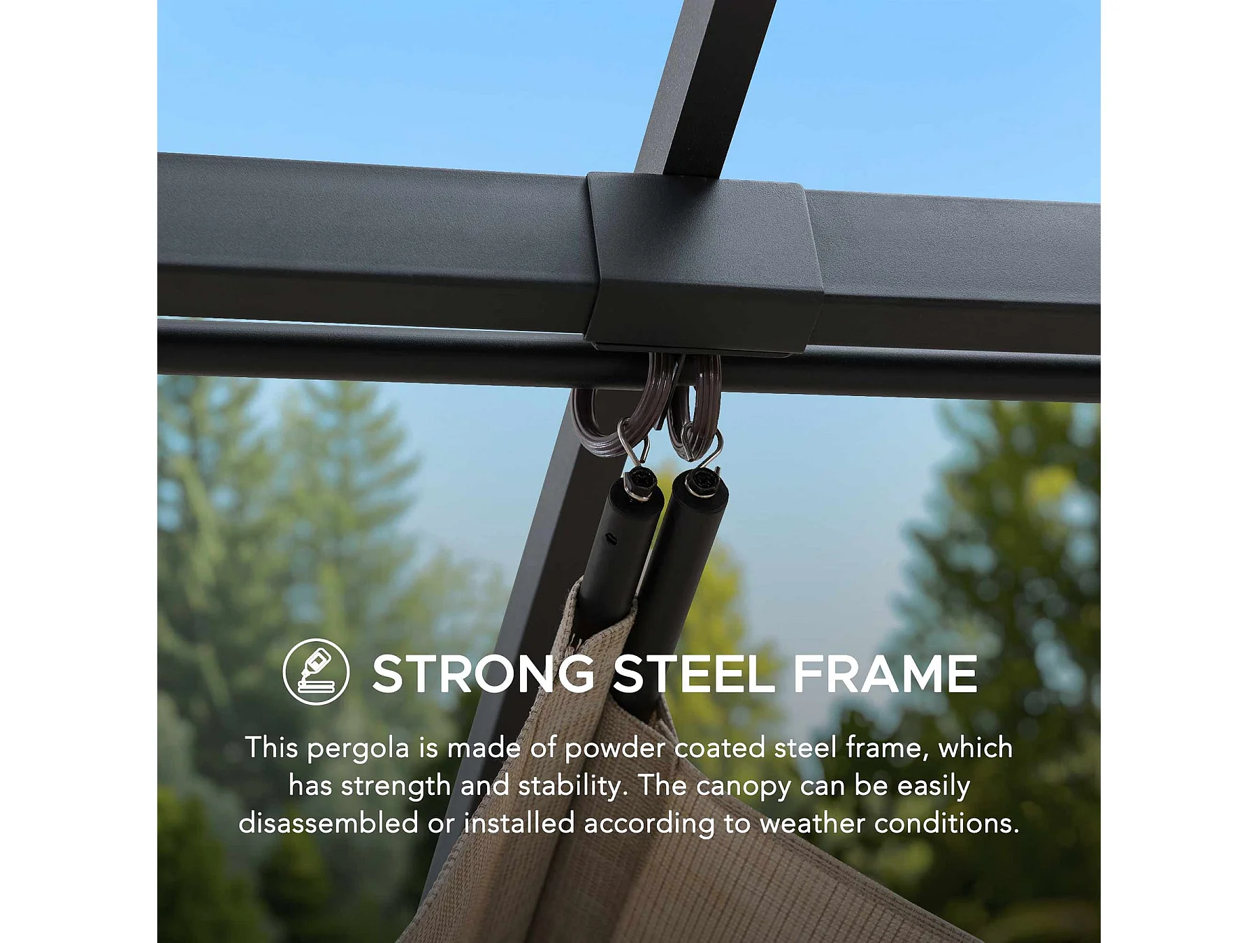Pergola rétractable en acier avec toit beige pour jardin GIONA 277 cm x 363 cm