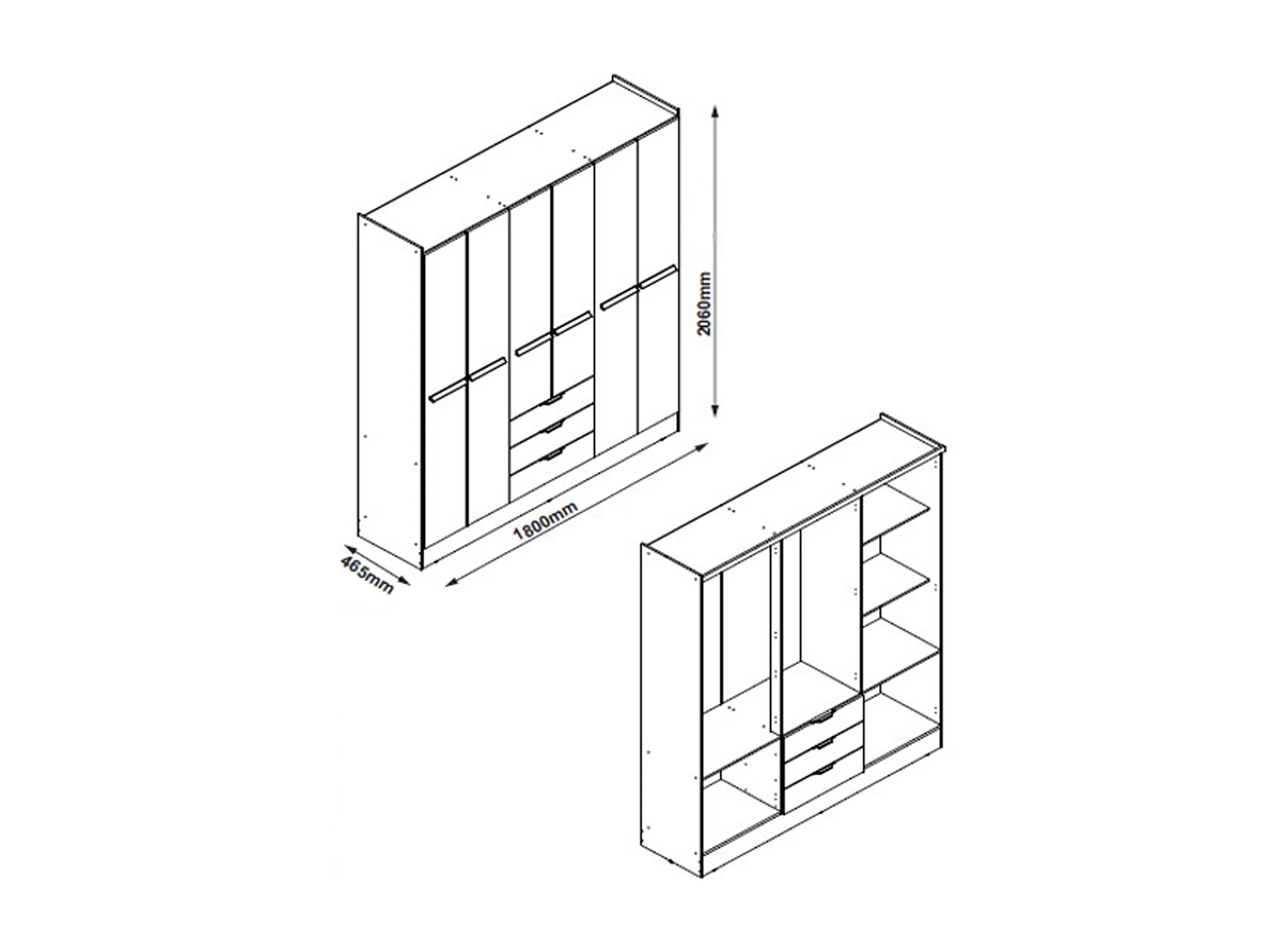 Armoire 6 portes et 3 tiroirs - L180 cm - Coloris : Beige et naturel - PEROLI