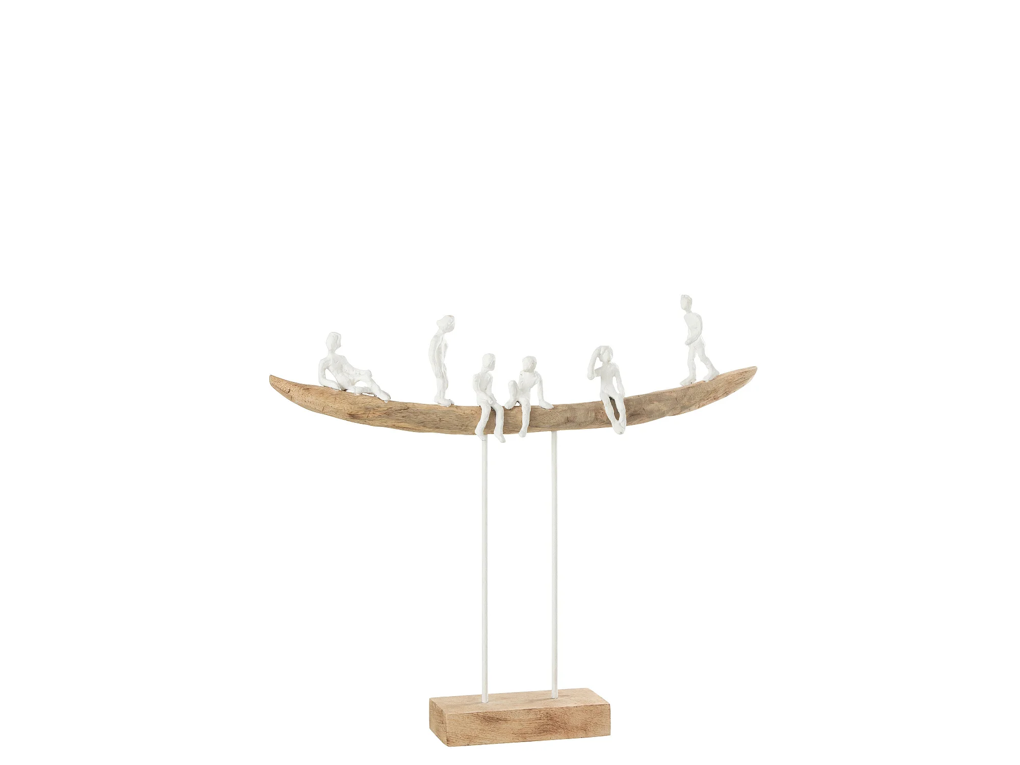 Statuette Déco en Bois "Personnage sur Banc" 47cm Naturel