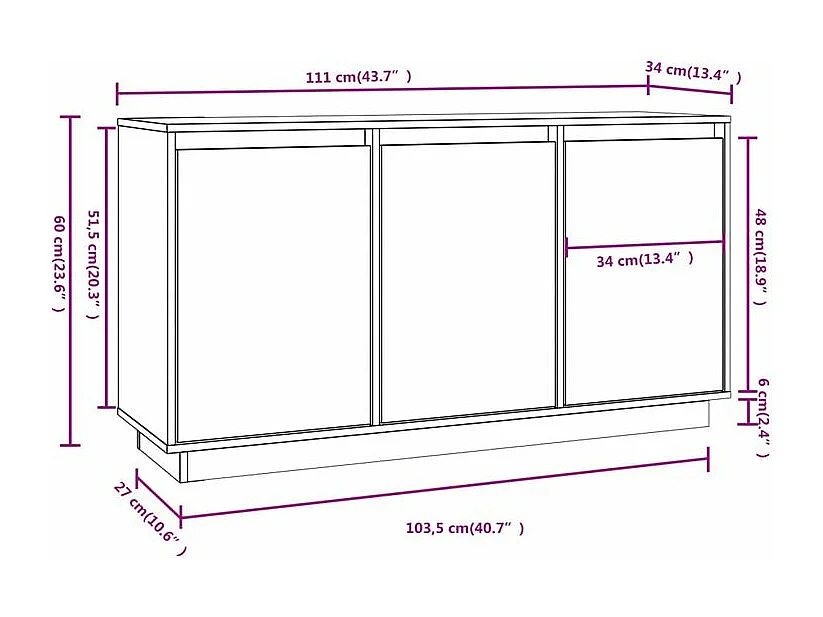 Petit buffet 3 portes en bois massif de pin Romane – Style classique et fonctionnel-Couleur Naturel