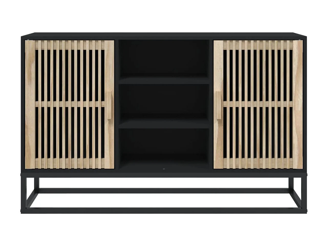 Petit buffet en bois naturel 2 portes 2 étagères et pieds en métal noir 105cm - Modèle Bolivia-Couleur Naturel