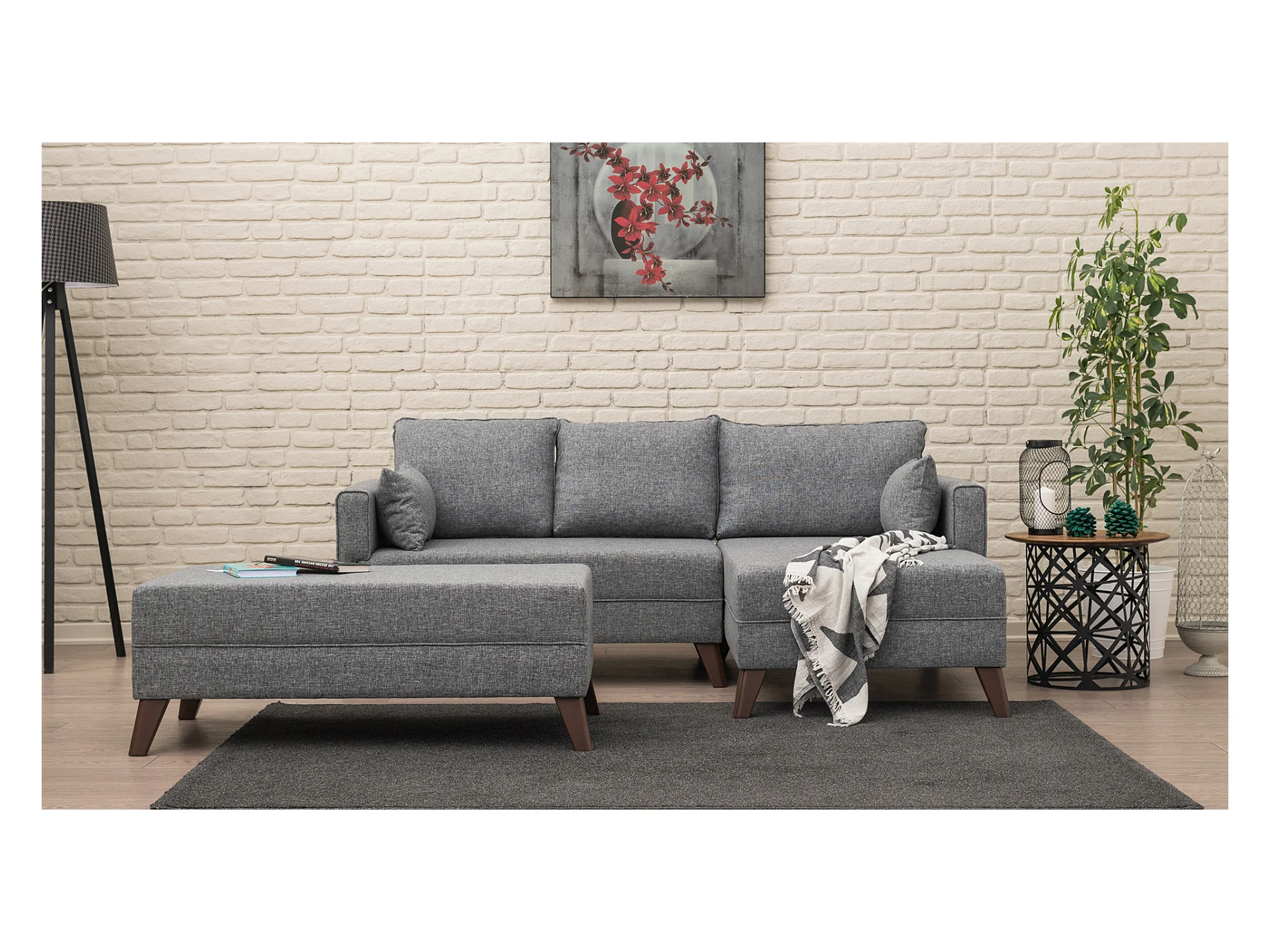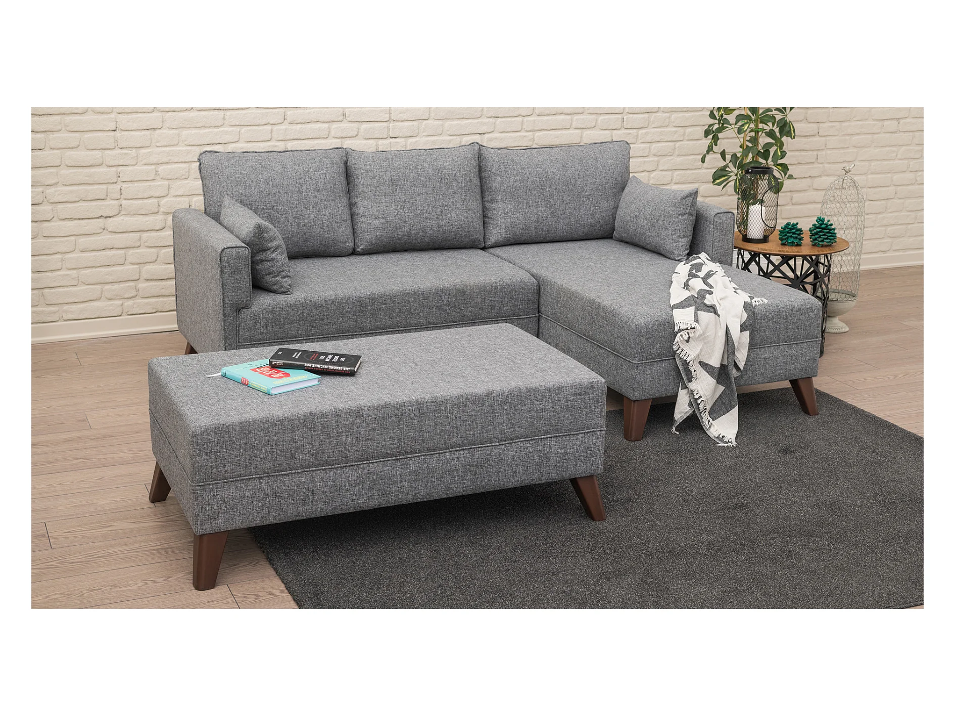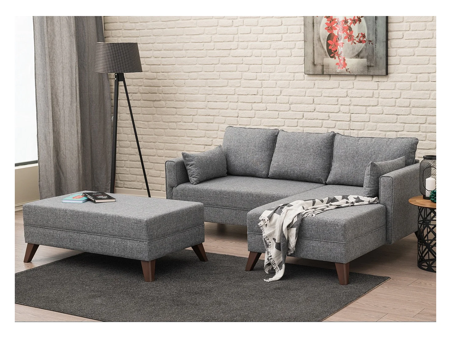 Petit canapé convertible d'angle droit avec pouf tissu gris Kandy 205cm