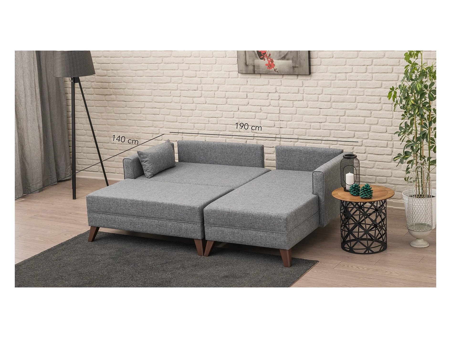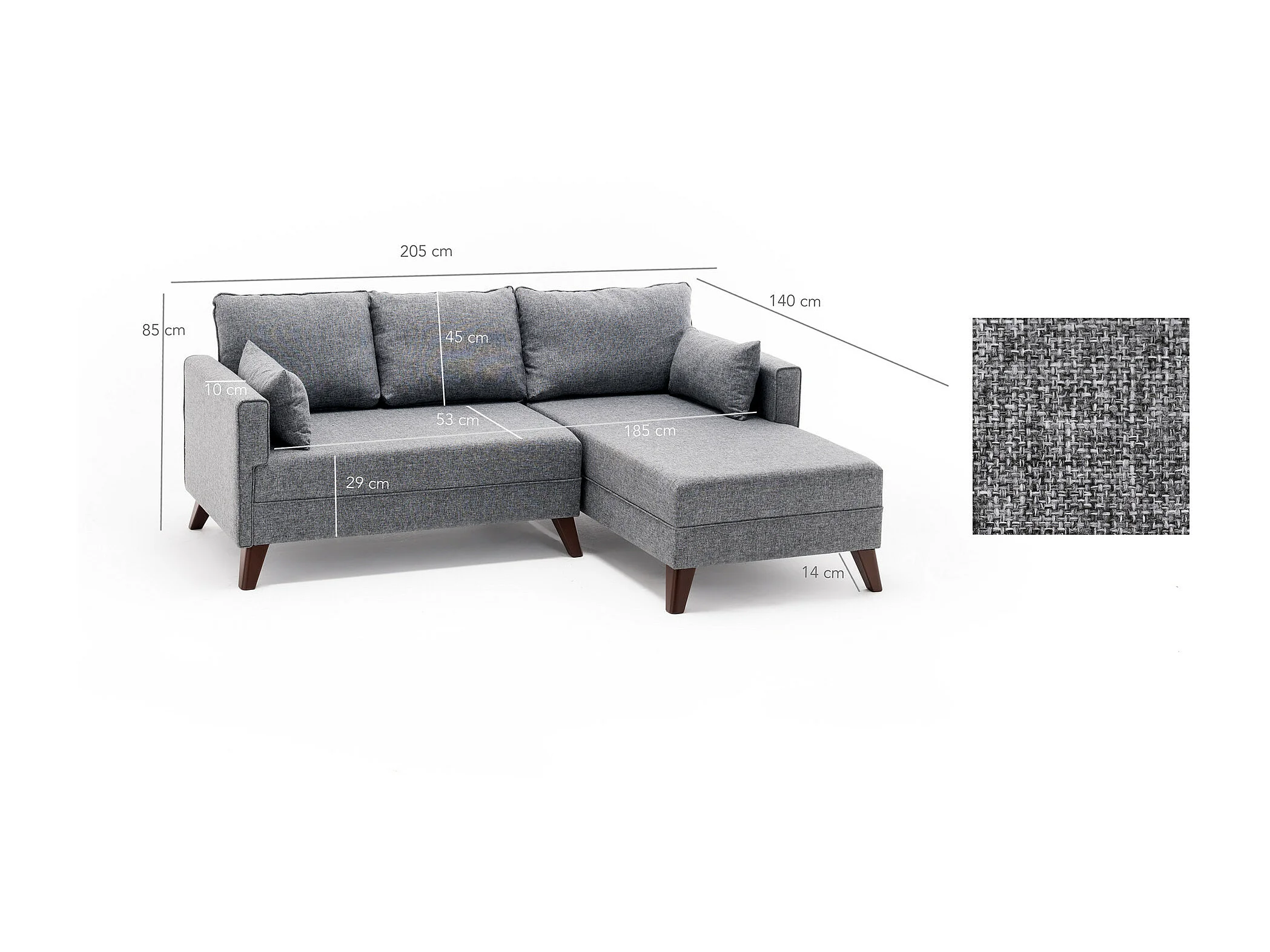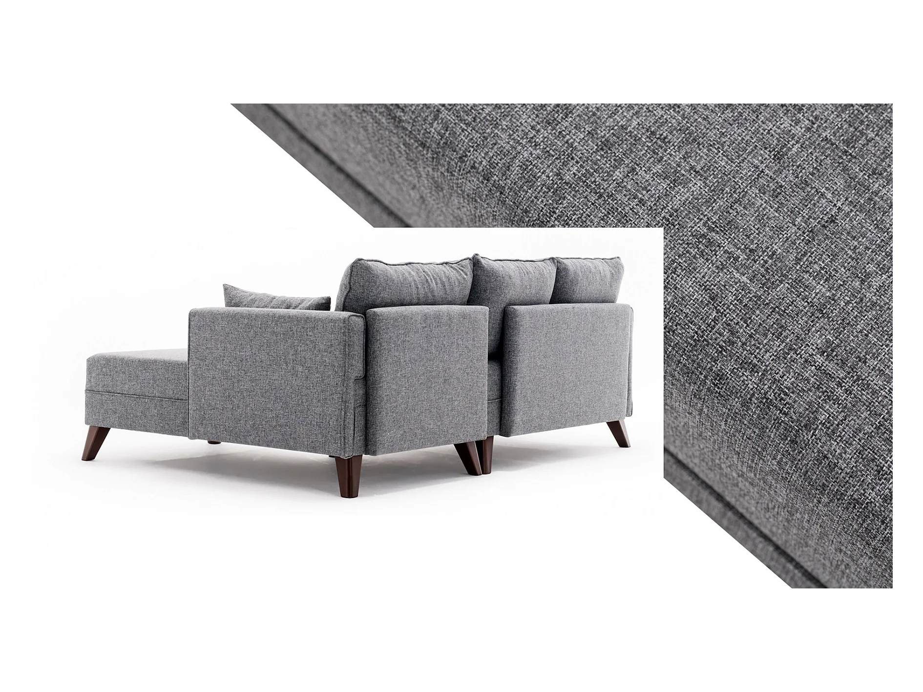 Petit canapé convertible d'angle droit avec pouf tissu gris Kandy 205cm
