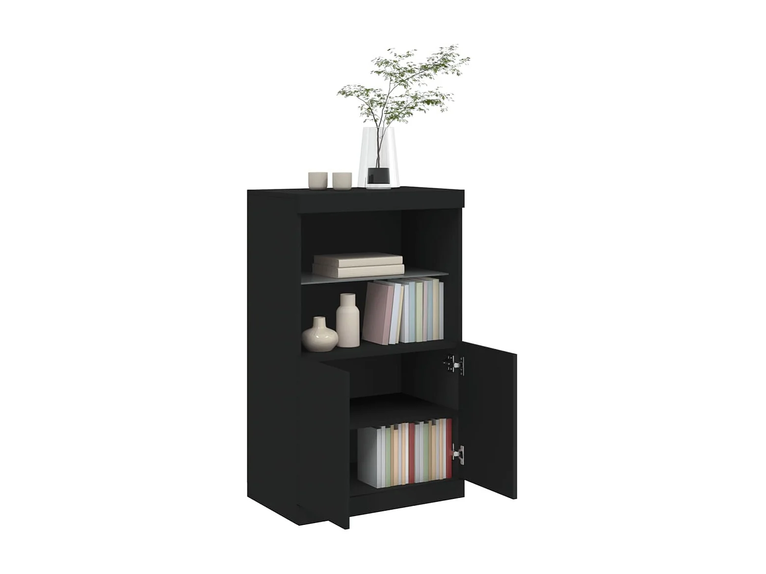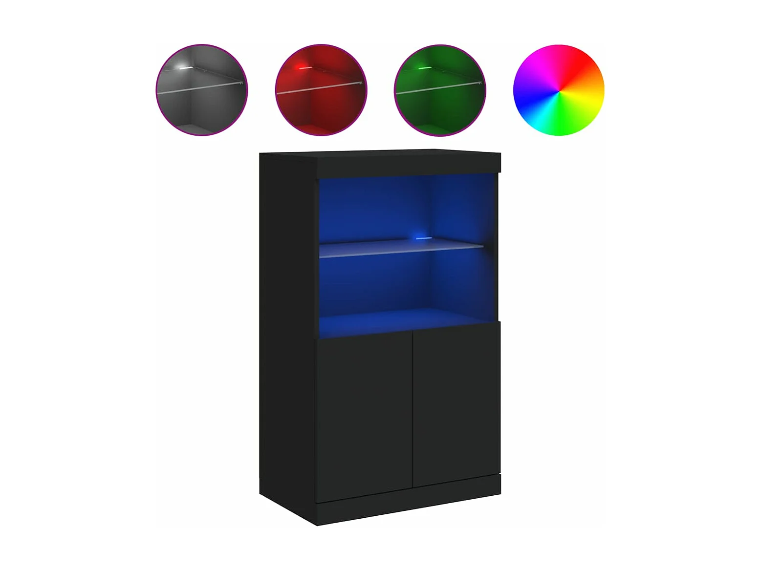 Petit meuble 2 portes et niches éclairage LED - Collection Arizona-Couleur Noir