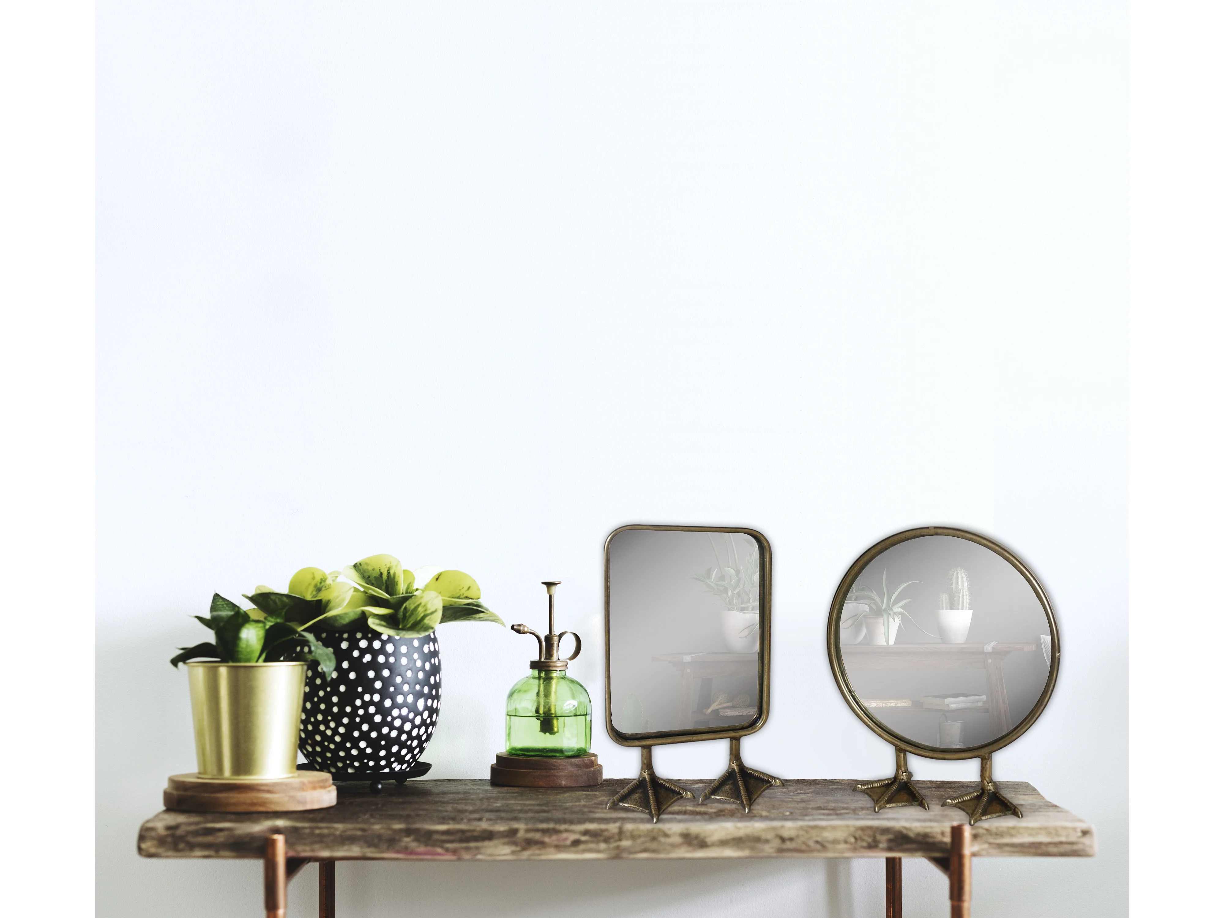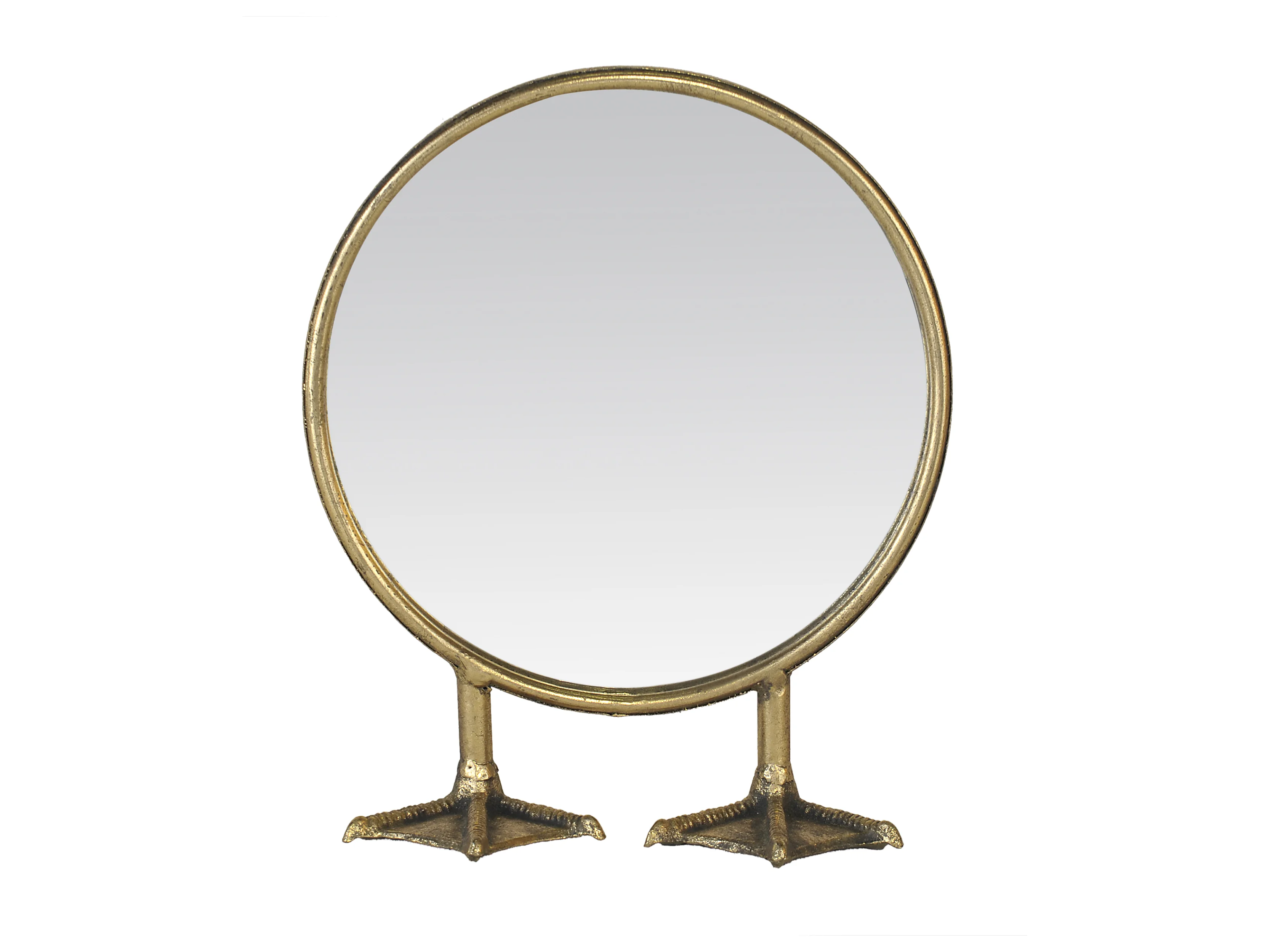 Petit miroir rond sur pied de canard doré 25x9,5x29,5cm