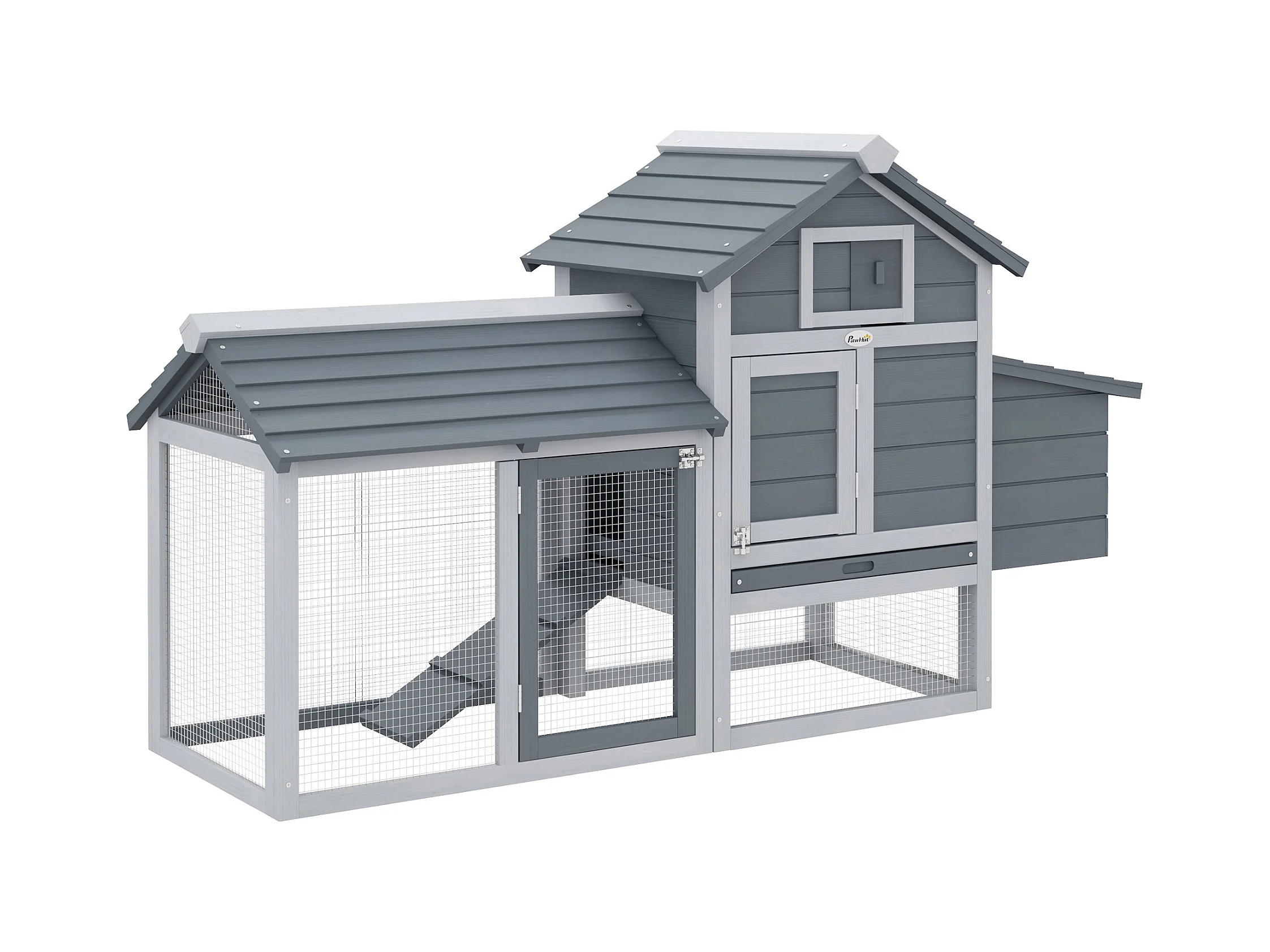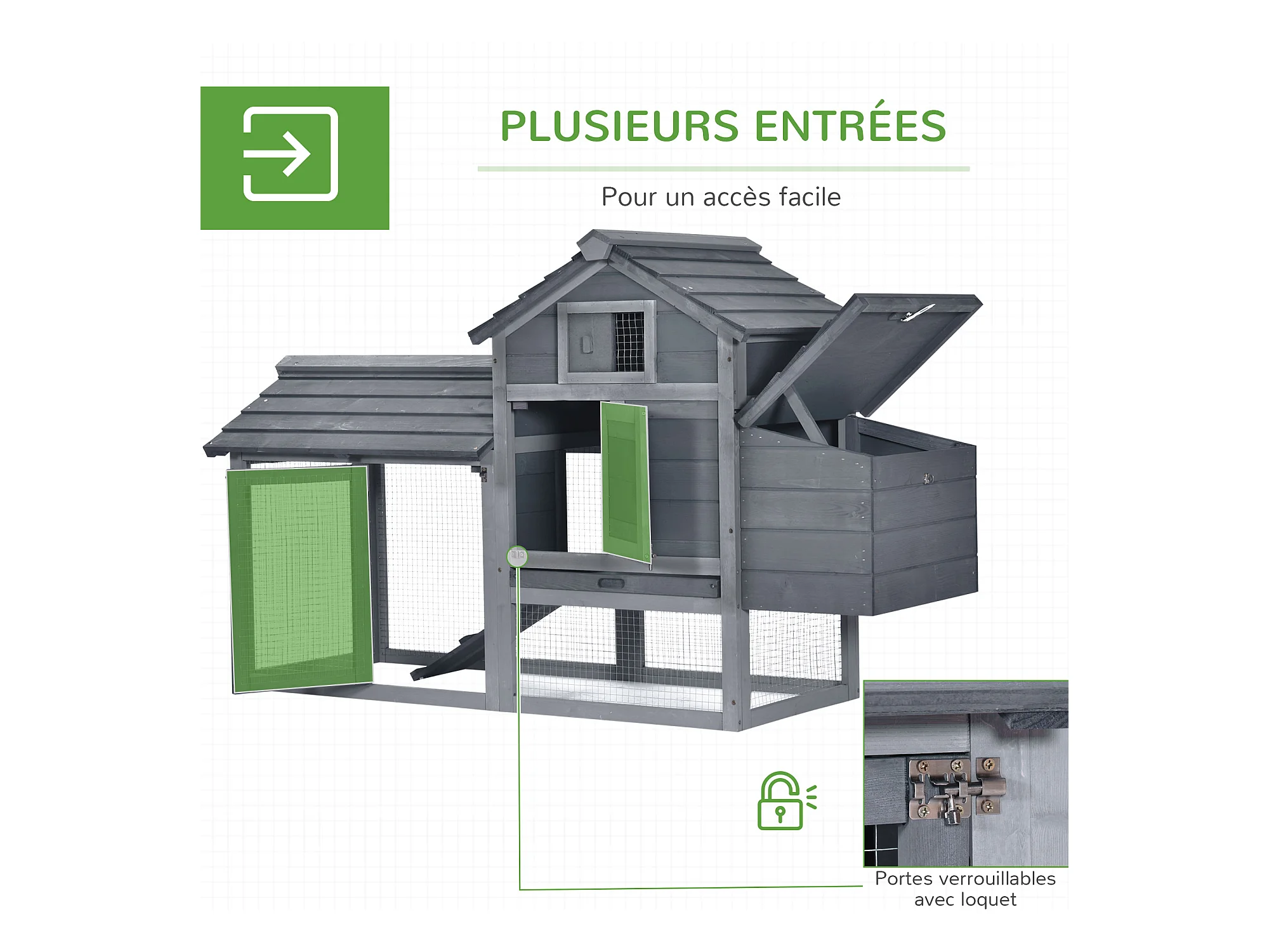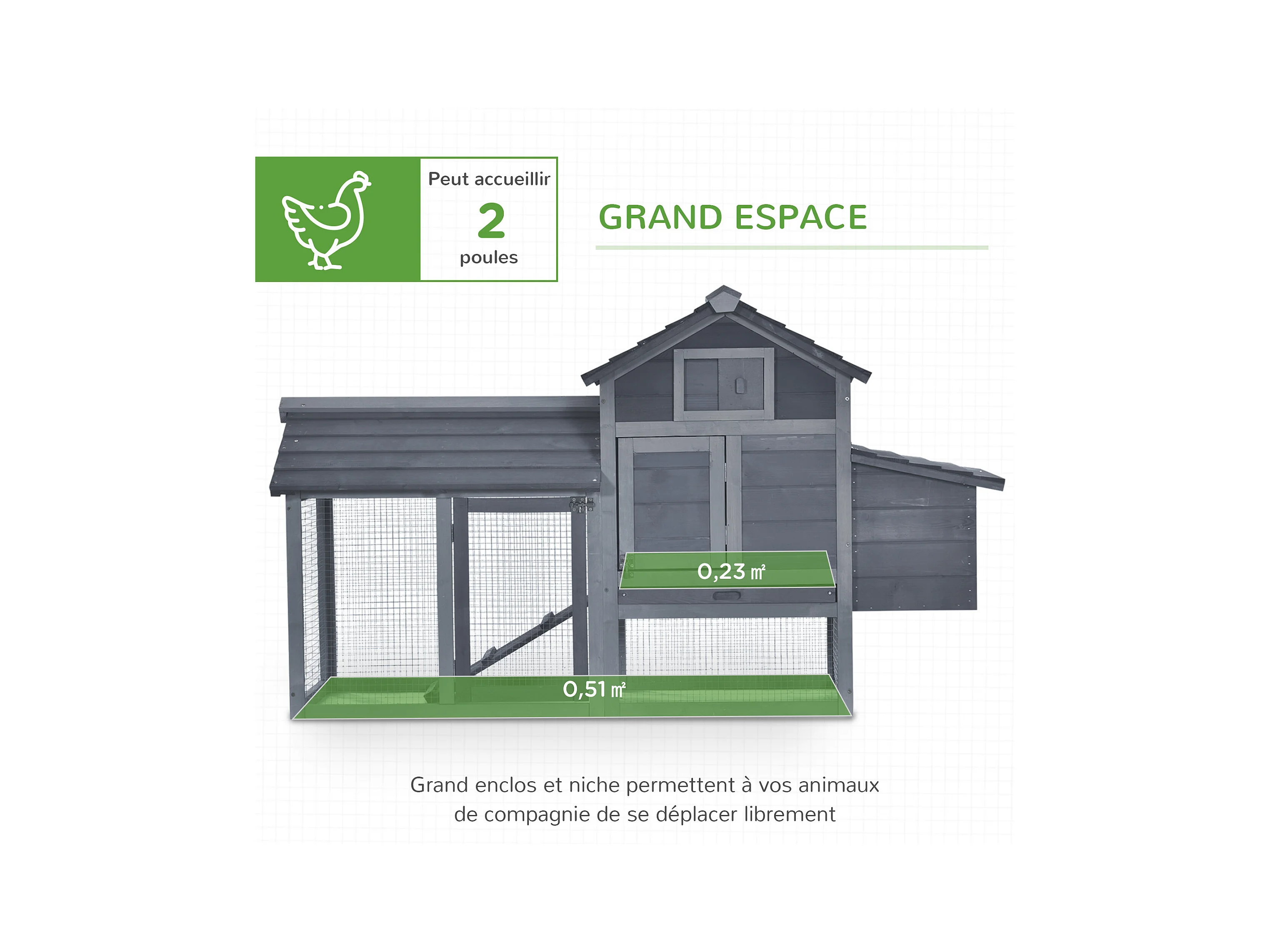 Poulailler en bois 2 enclos modulables niche pondoir gris