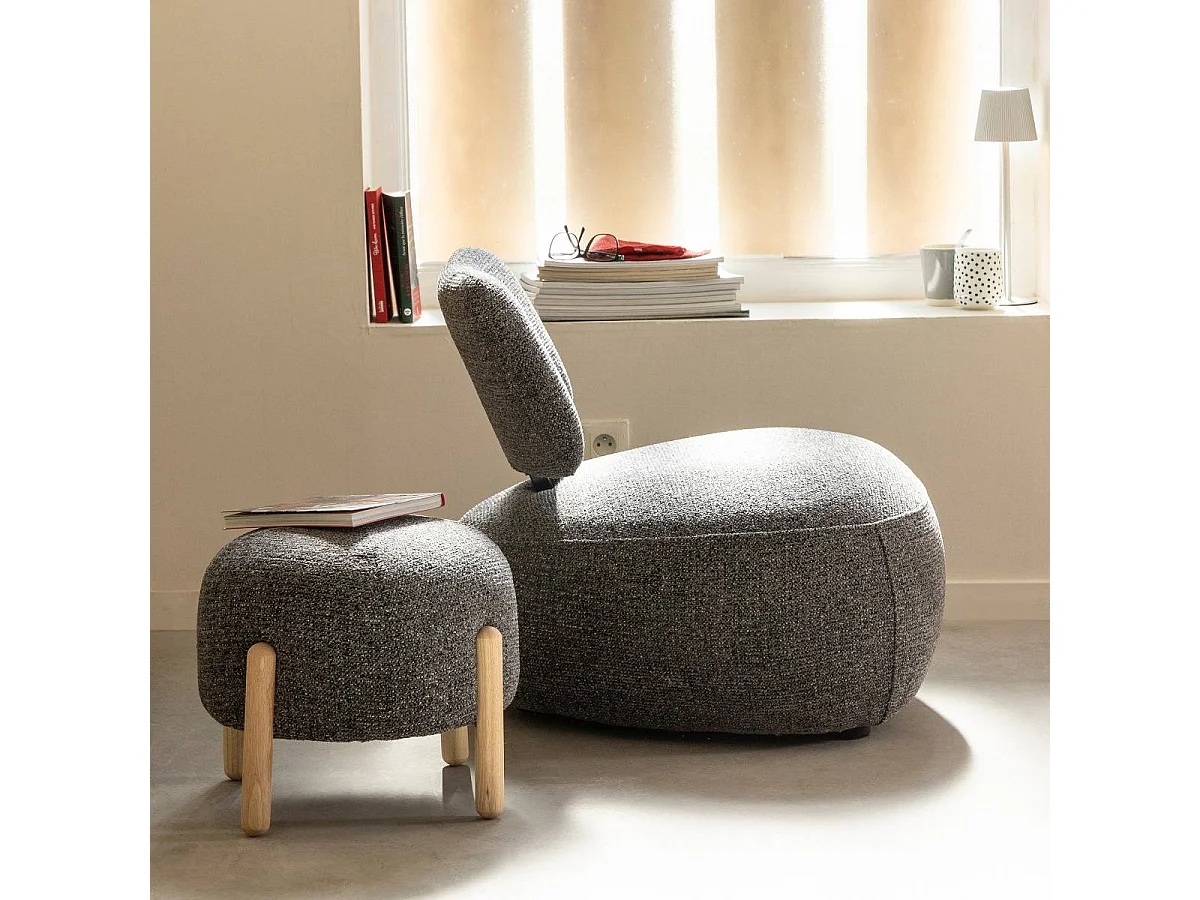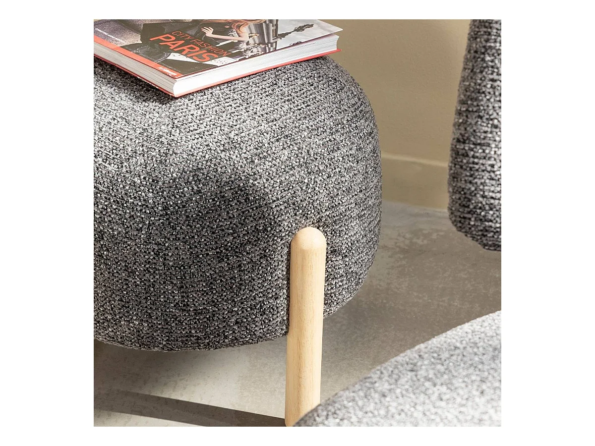 Tabouret Rond en Tissu Bouclé "Lodge" 45cm Gris