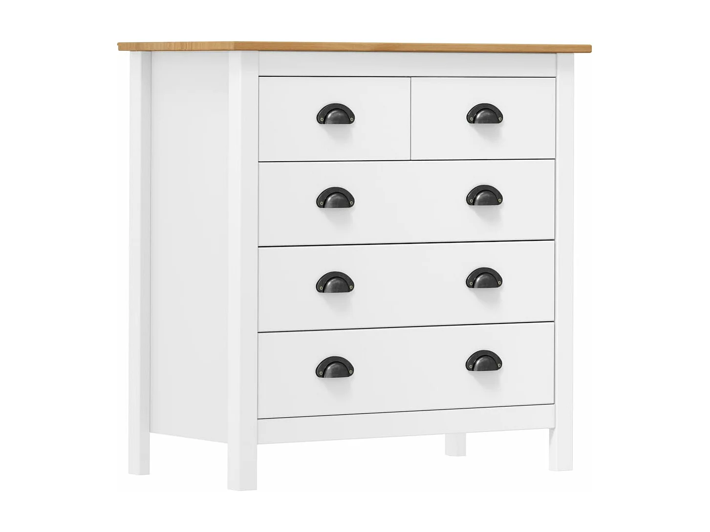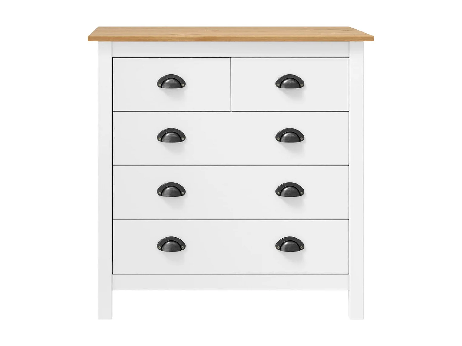Petite commode 5 tiroirs Kalexia 79cm - Bois de pin massif-Couleur Blanc et Chêne