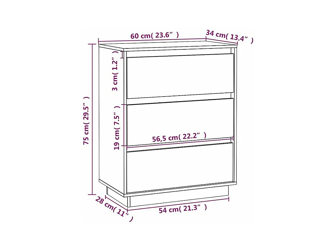 Commode blanche 60x34x75 Bois massif de pin Vimo