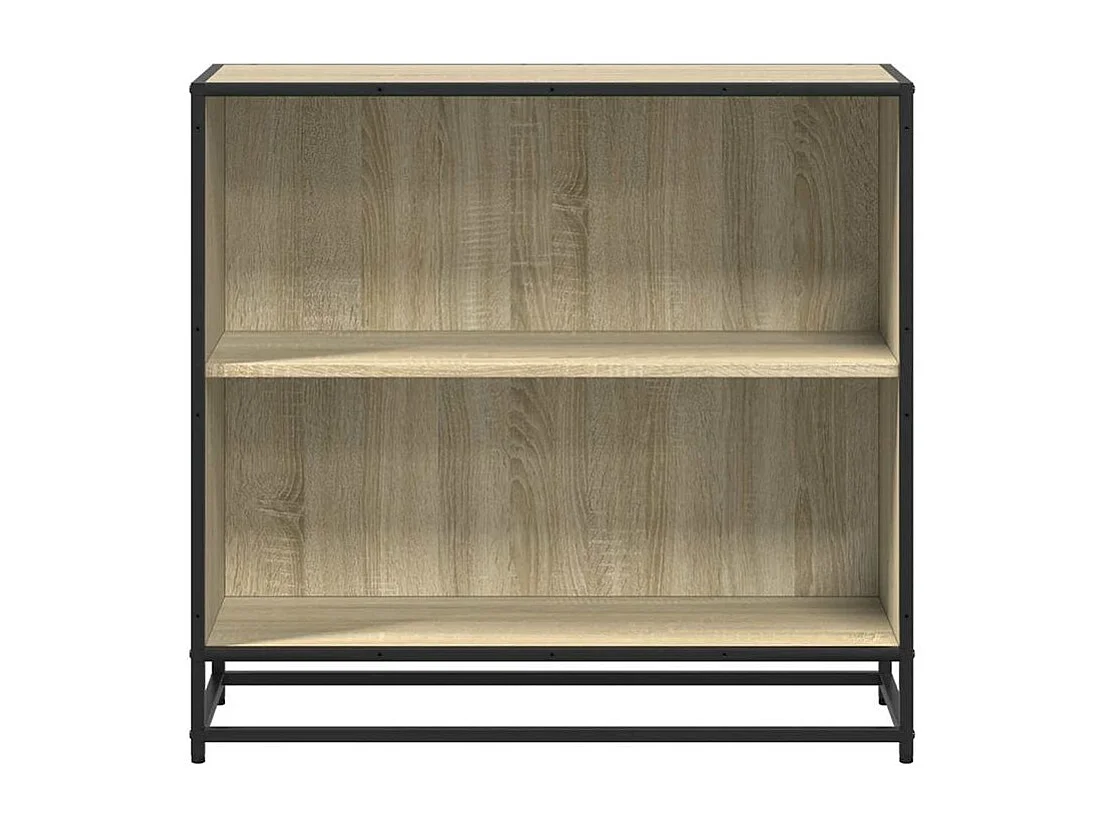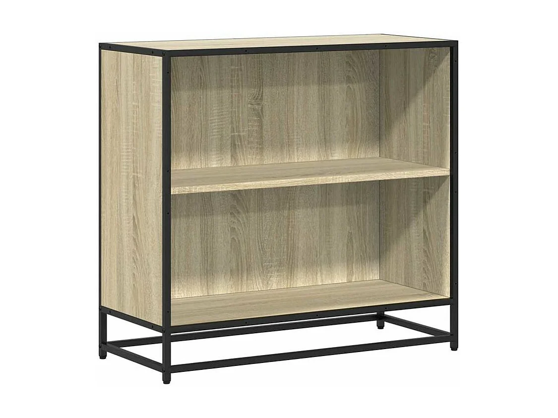 Petite étagère bibliothèque 2 niveaux Kalvani - Bois et metal noir-Couleur Chêne clair-Largeur 80 cm
