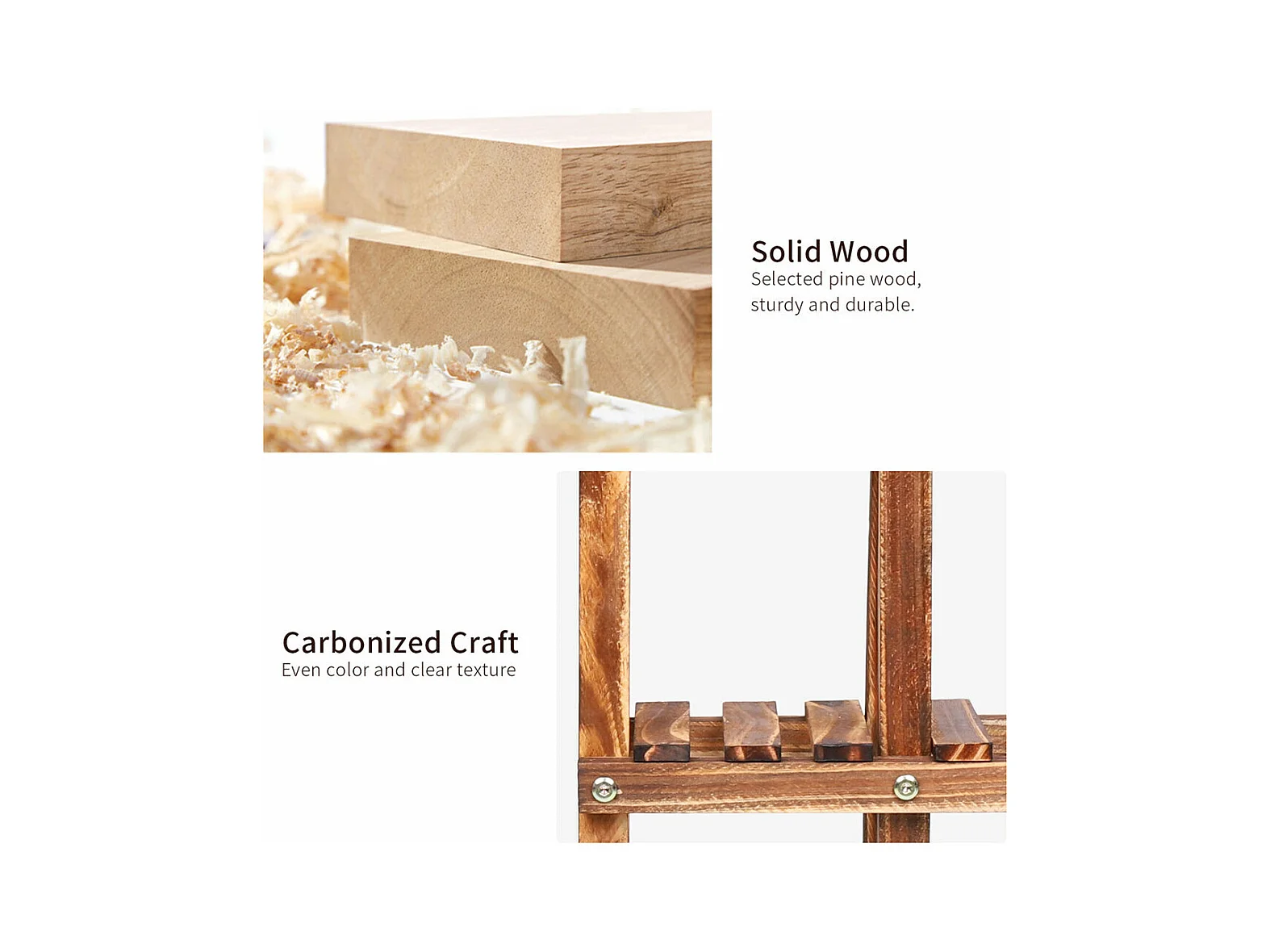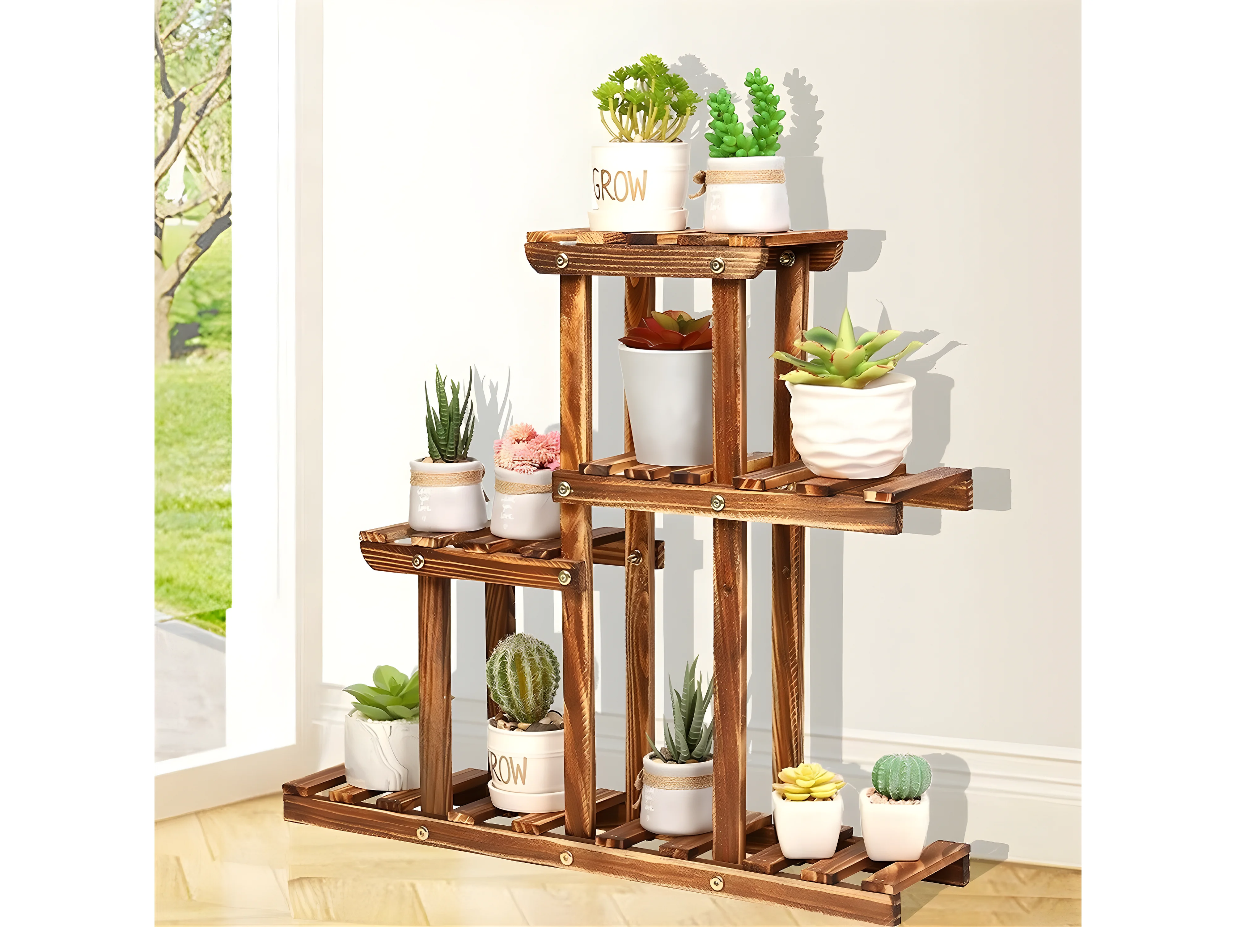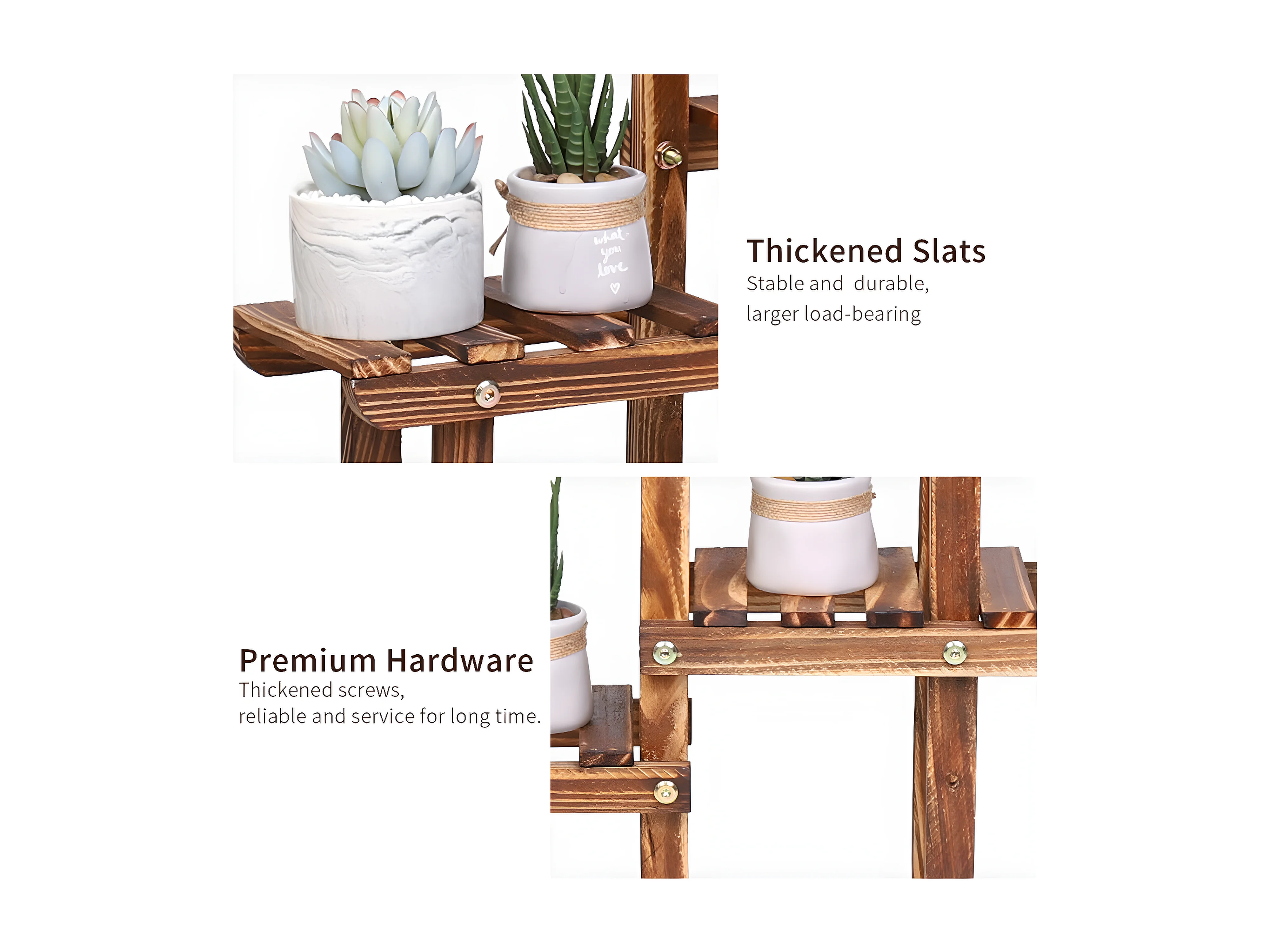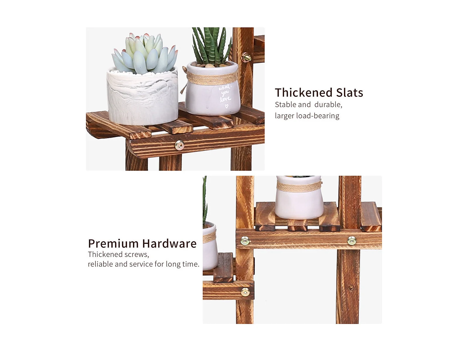 Étagère à fleurs en bois - porte plante bois 6 tablettes - dim. 98L x 28l x 95H cm - bois de sapin traité carbonisation