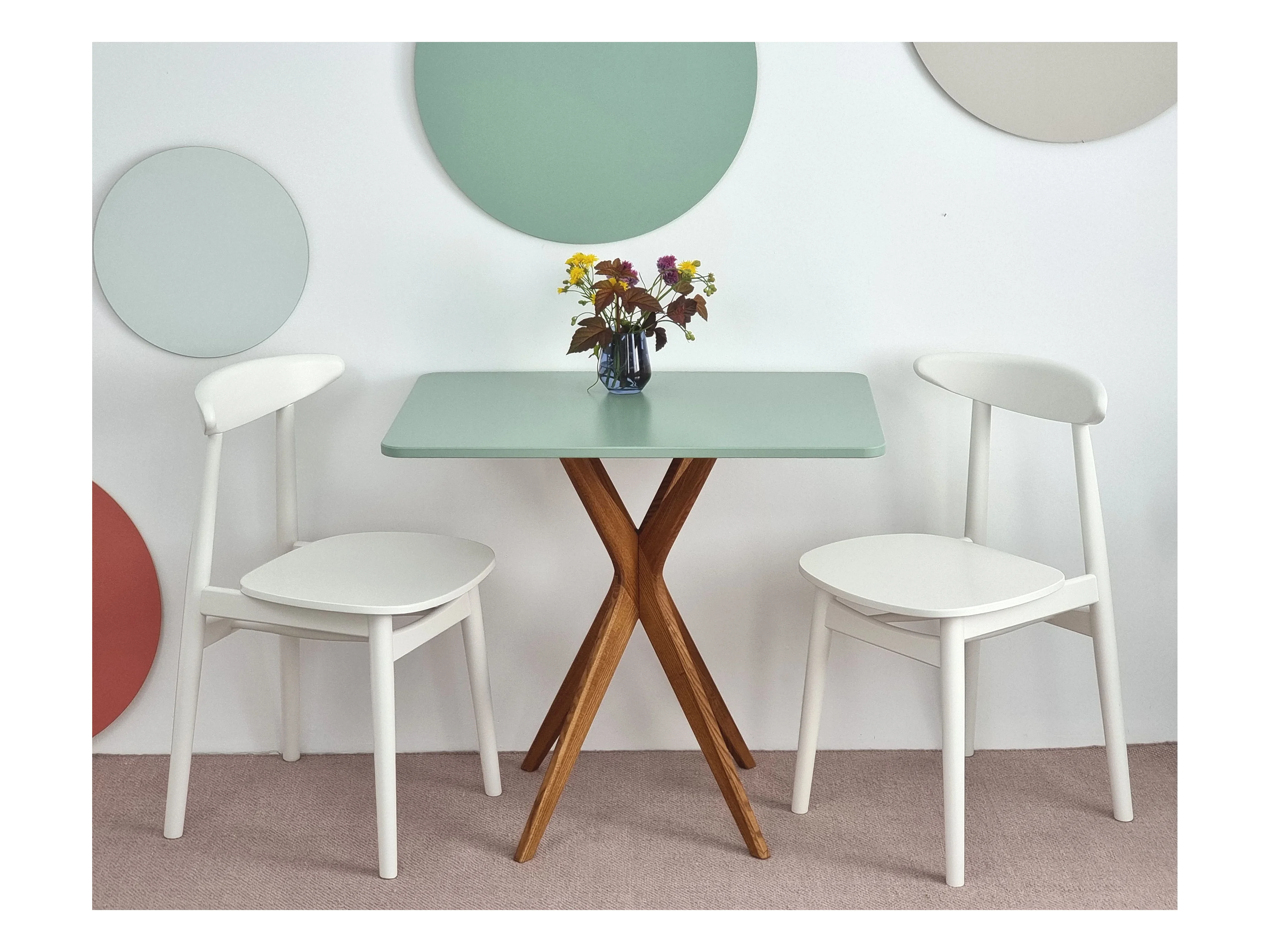 Petite table à manger rectangulaire Jubi 55x80cm Vert Sauge Chêne