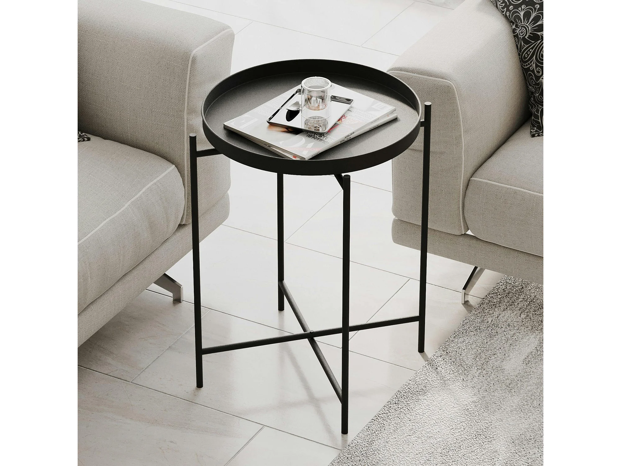 Petite table ronde noire design & plateau assorti SFAX