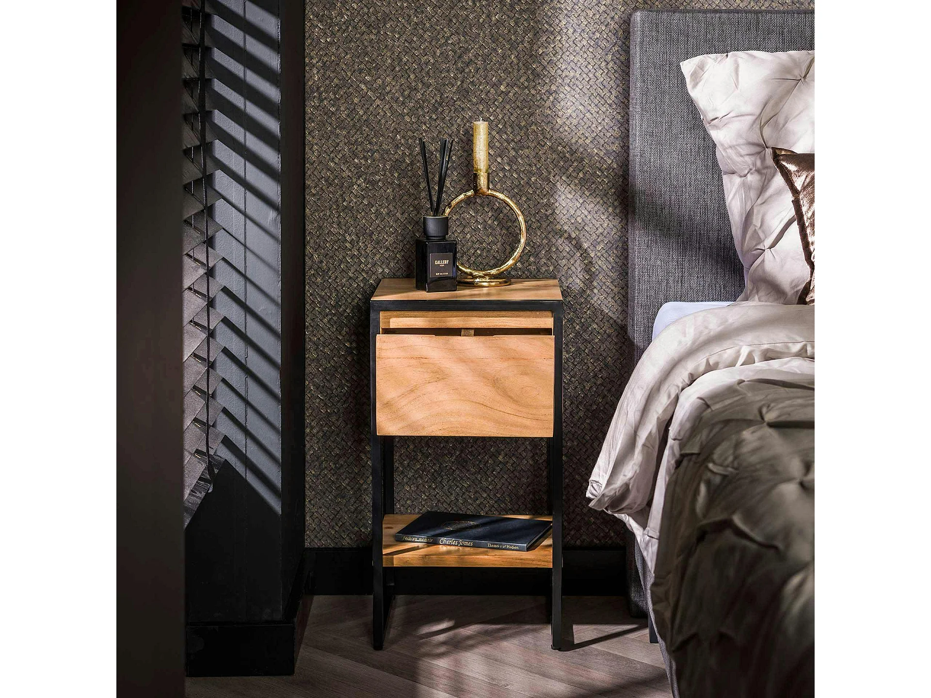 Table de chevet en bois de manguier motif baguette avec pieds épingle DELHI