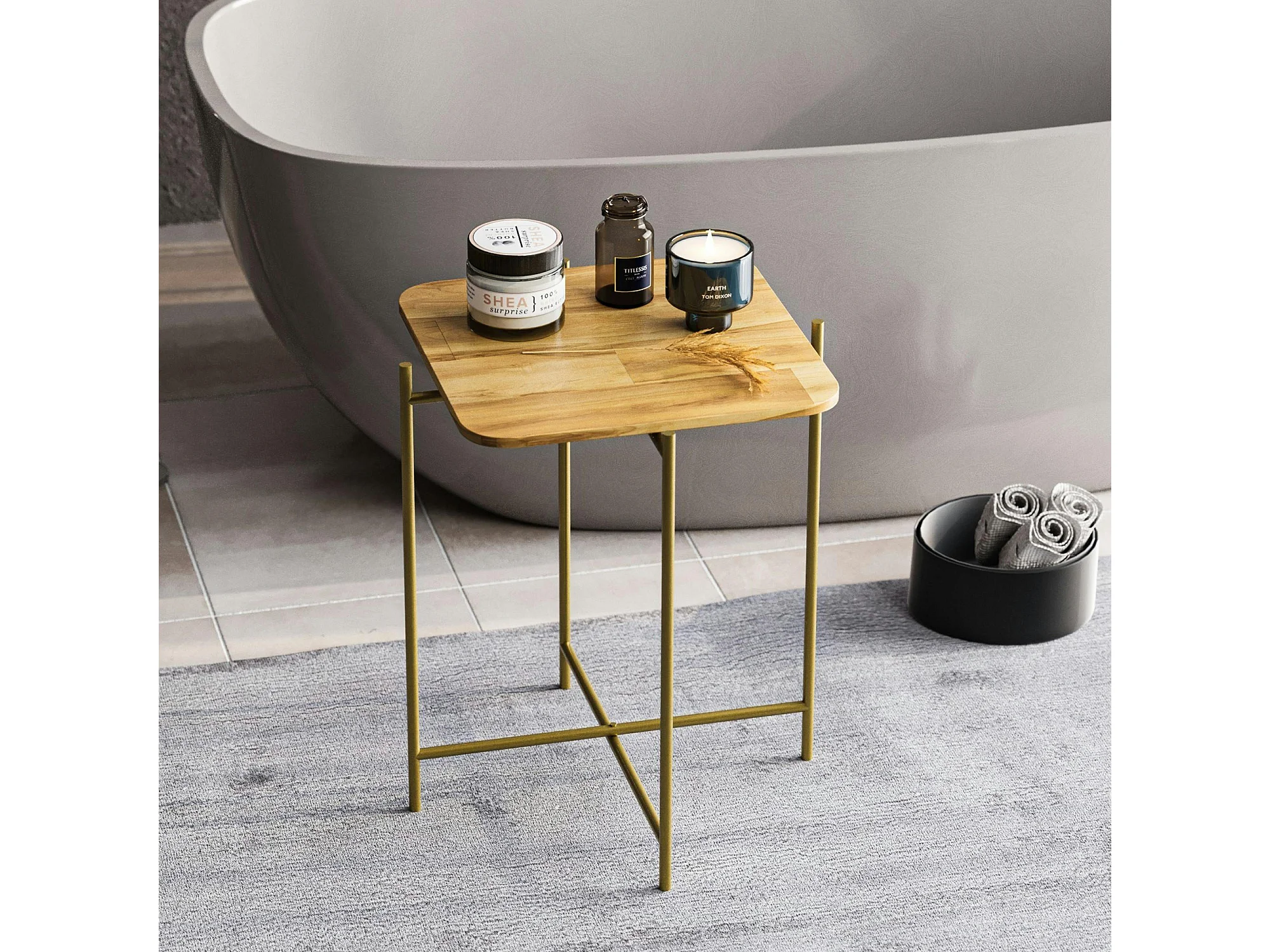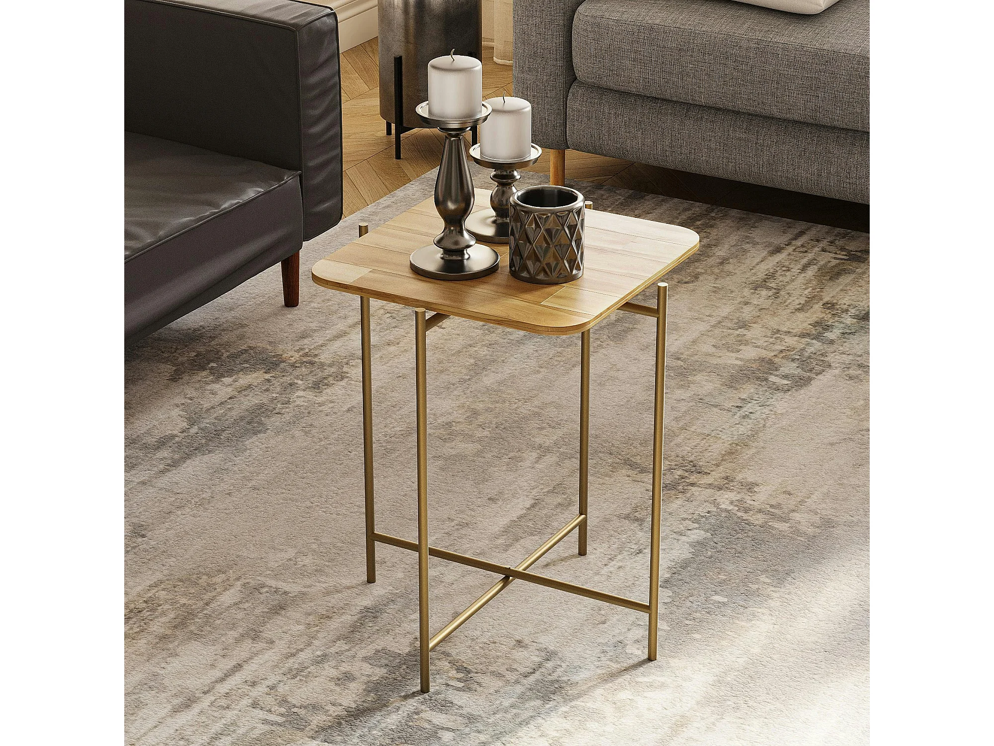 Bout de canapé cube noir - plateau effet chêne clair TALLINN