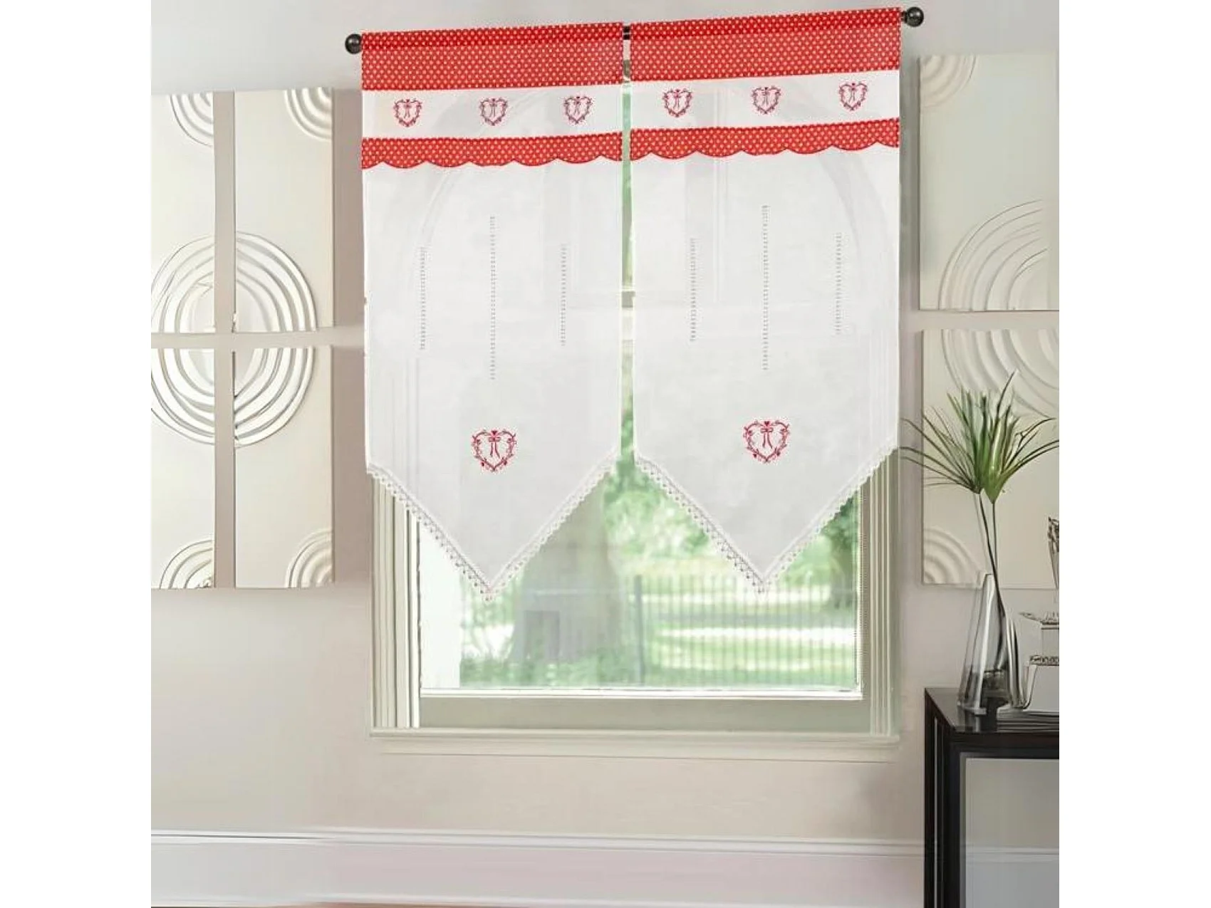 Paire de Voilages Brodés "Cosmos" 60x160cm Bordeaux & Blanc